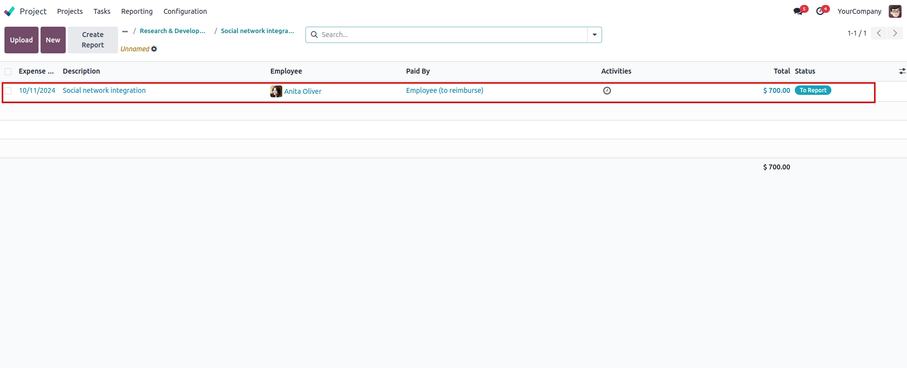After installation, open the project task from which you want to create an expense. You will find an option to create expenses within the task view. Fill in the necessary details and save.