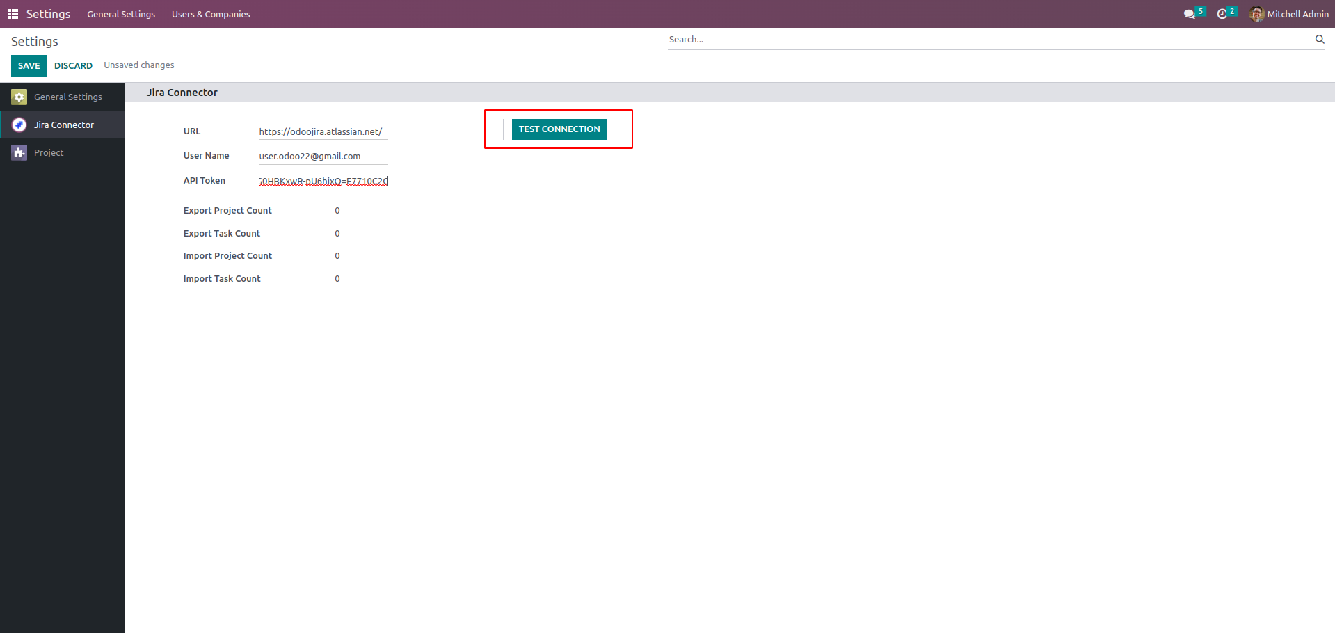 First set the URL of Jira, Username and API Token. Then, you can test the connection.
