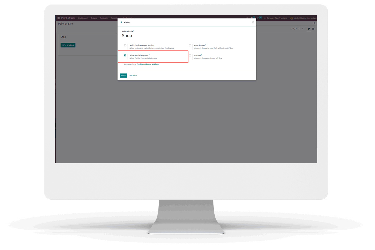You have to enable Invoice and Partial Payment in Payment Screen to Allow Partial Payment in POS Screen.