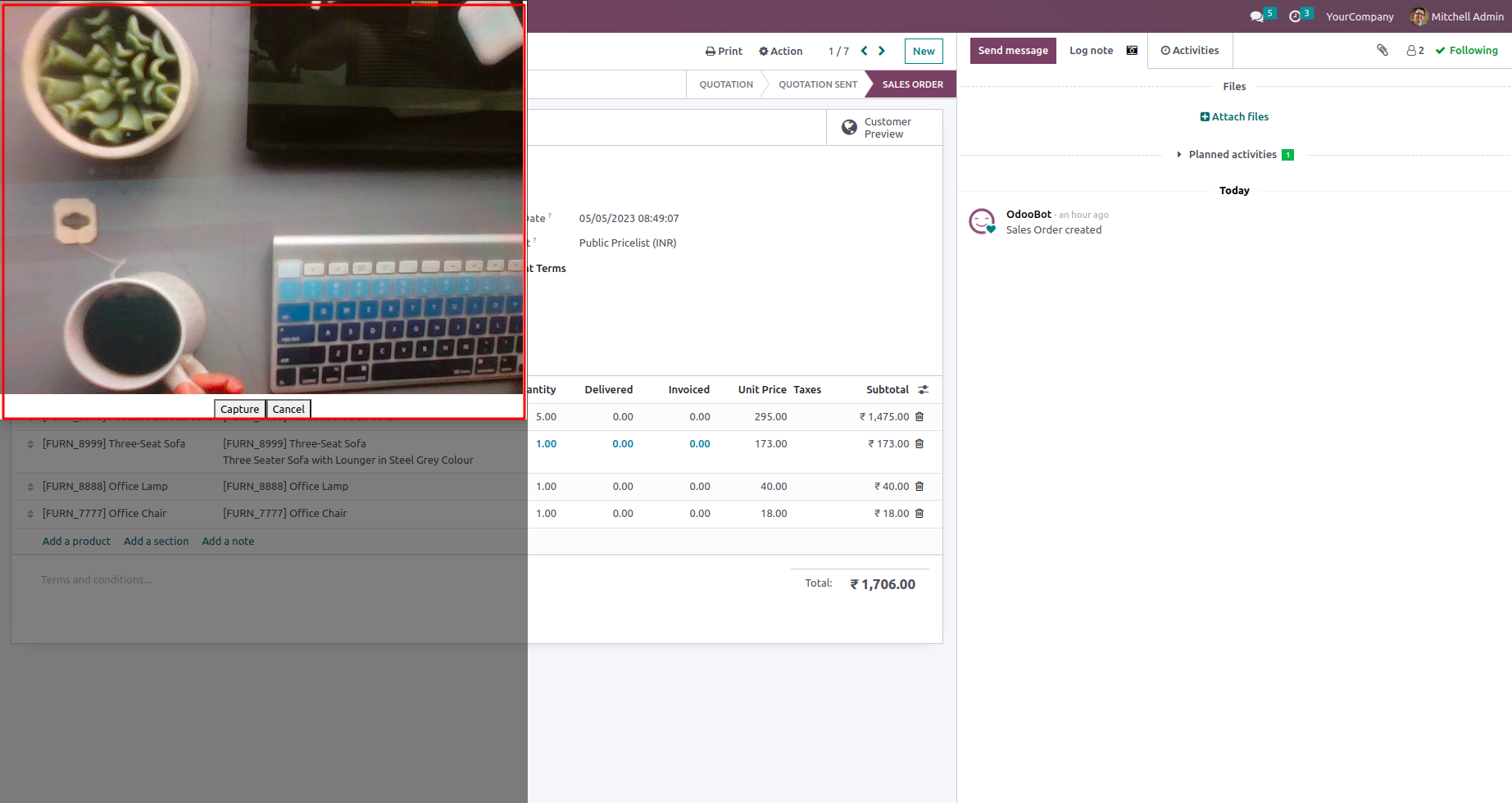 By clicking on the camera button we will have a camera screen.We can add catured images to chatter by clicking cature button