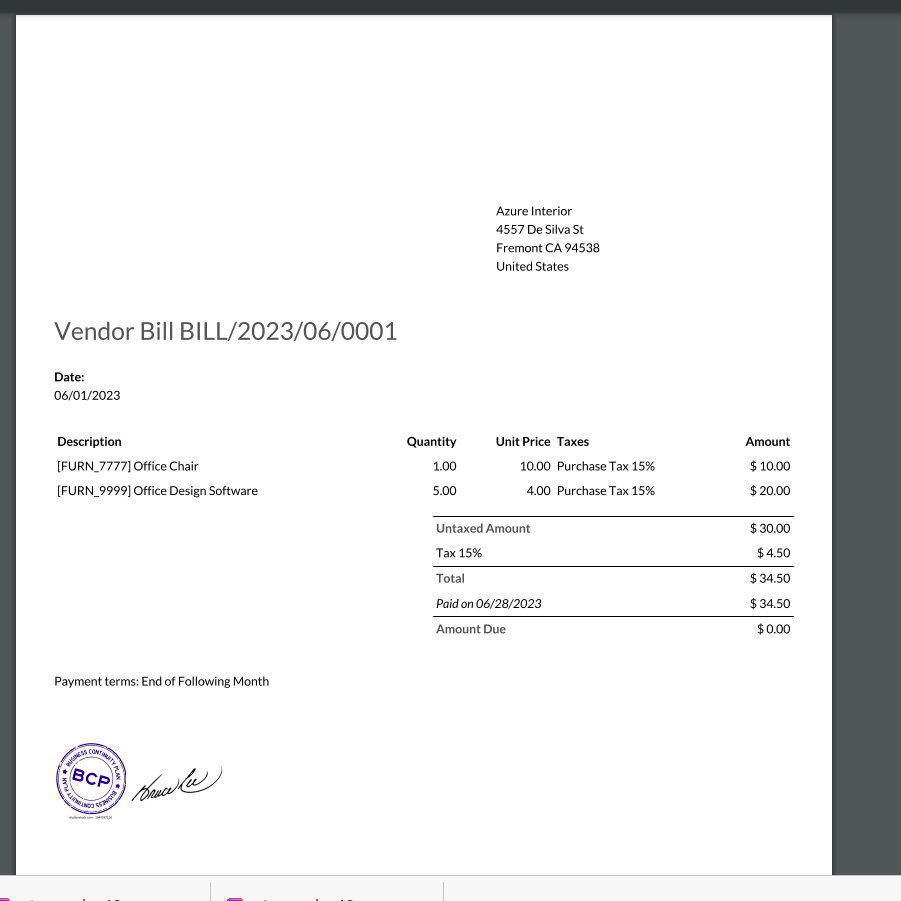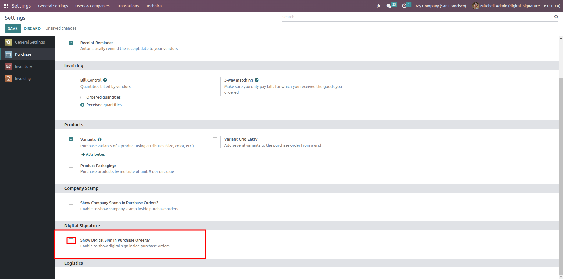 A Module for Adding Digital Signature and Company Stamp in Purchase, Inventory, Invoices
