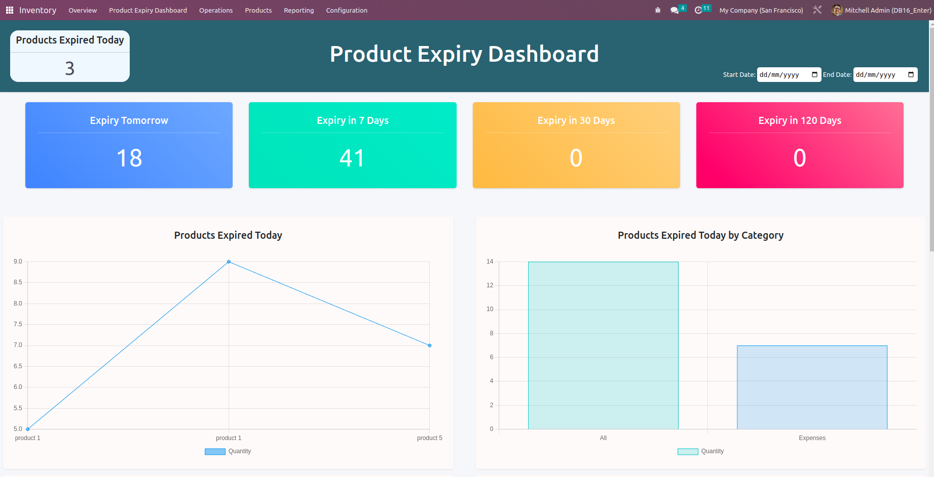 Navigate to Inventory --> Product Expiry Dashboard menu.