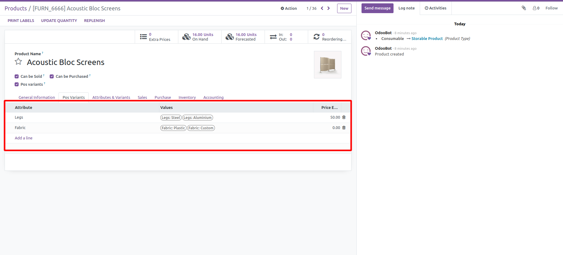Option for activating/inactivating variant types in POS.