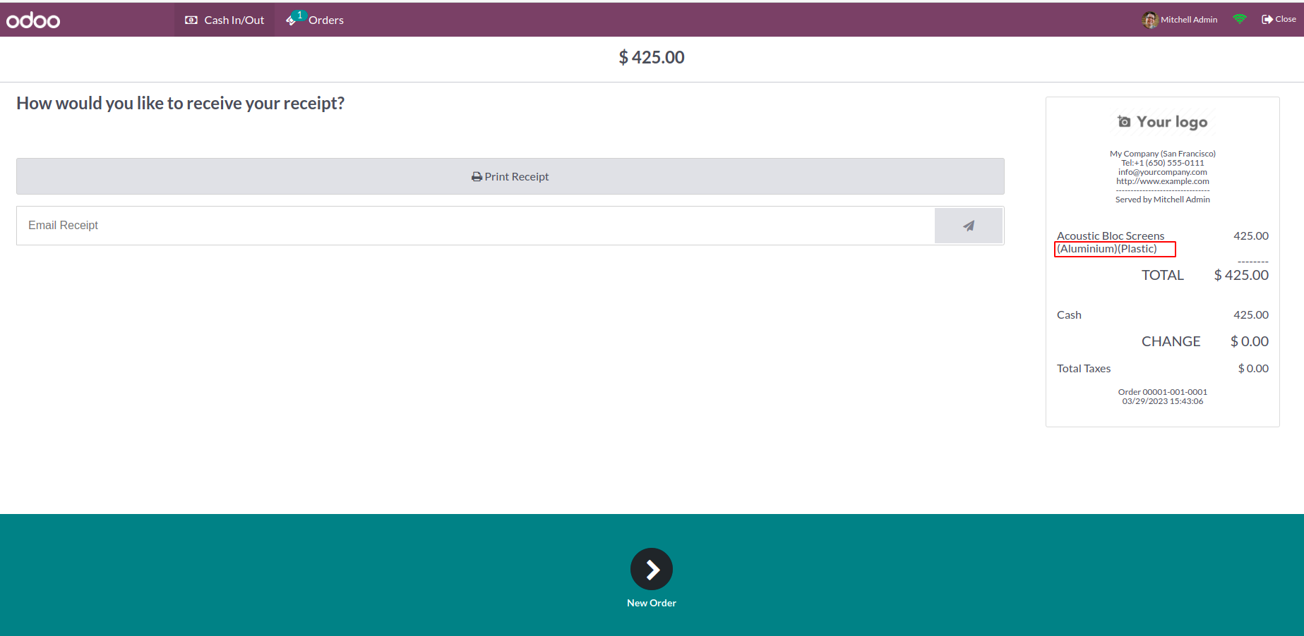 The order receipt will be shown as below.