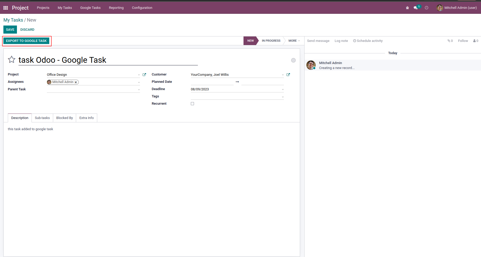 Google Tasks Synchronization With Project And Tasks In Odoo