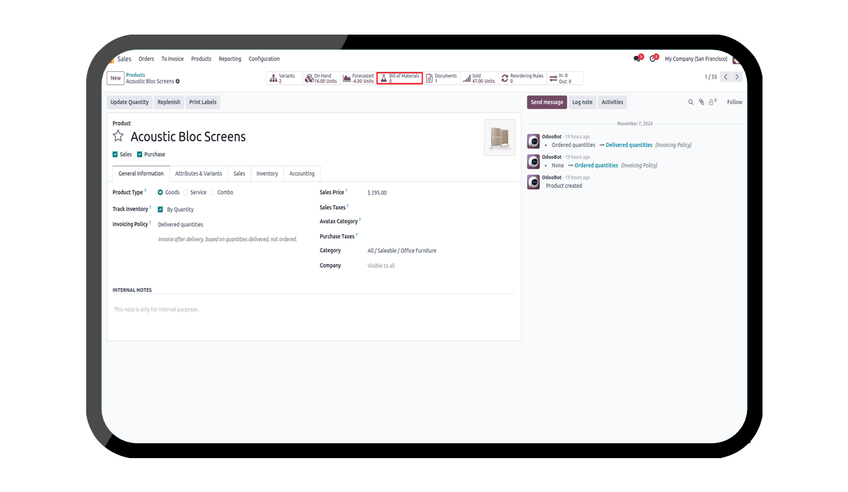 After Product Duplicate, number of Copied BOM will be displayed in the product form.
