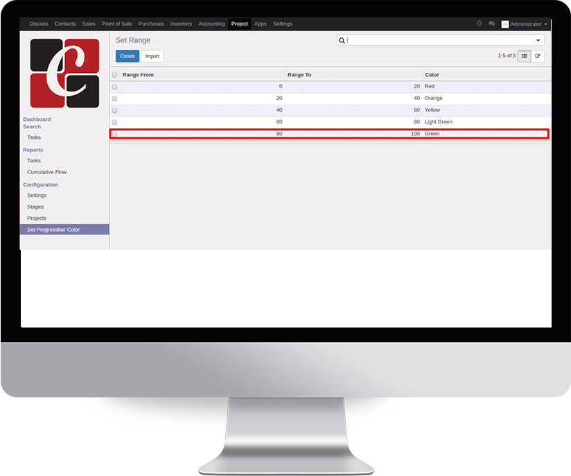 User Can Define the Color of Progressbar for Different Percentage Ranges.