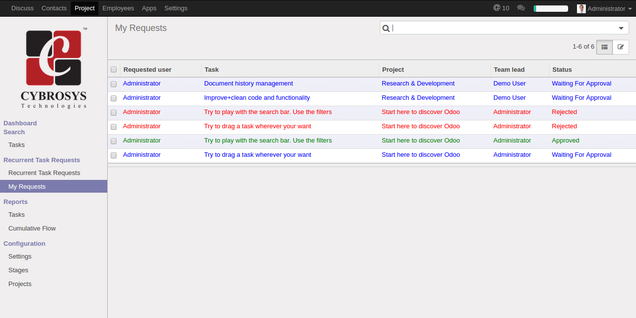 Here current user can get recurrent task request. So he can approve request or reject request with a reason. If he approve the request task will be recurrently created according to the interval type and interval quantity.