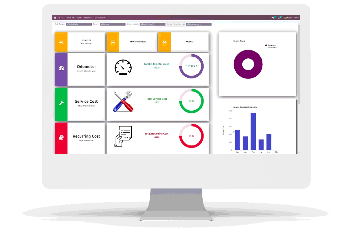 The Fleet Dashboard has different types of graphs that will give you a complete analysis of the Fleet Module.