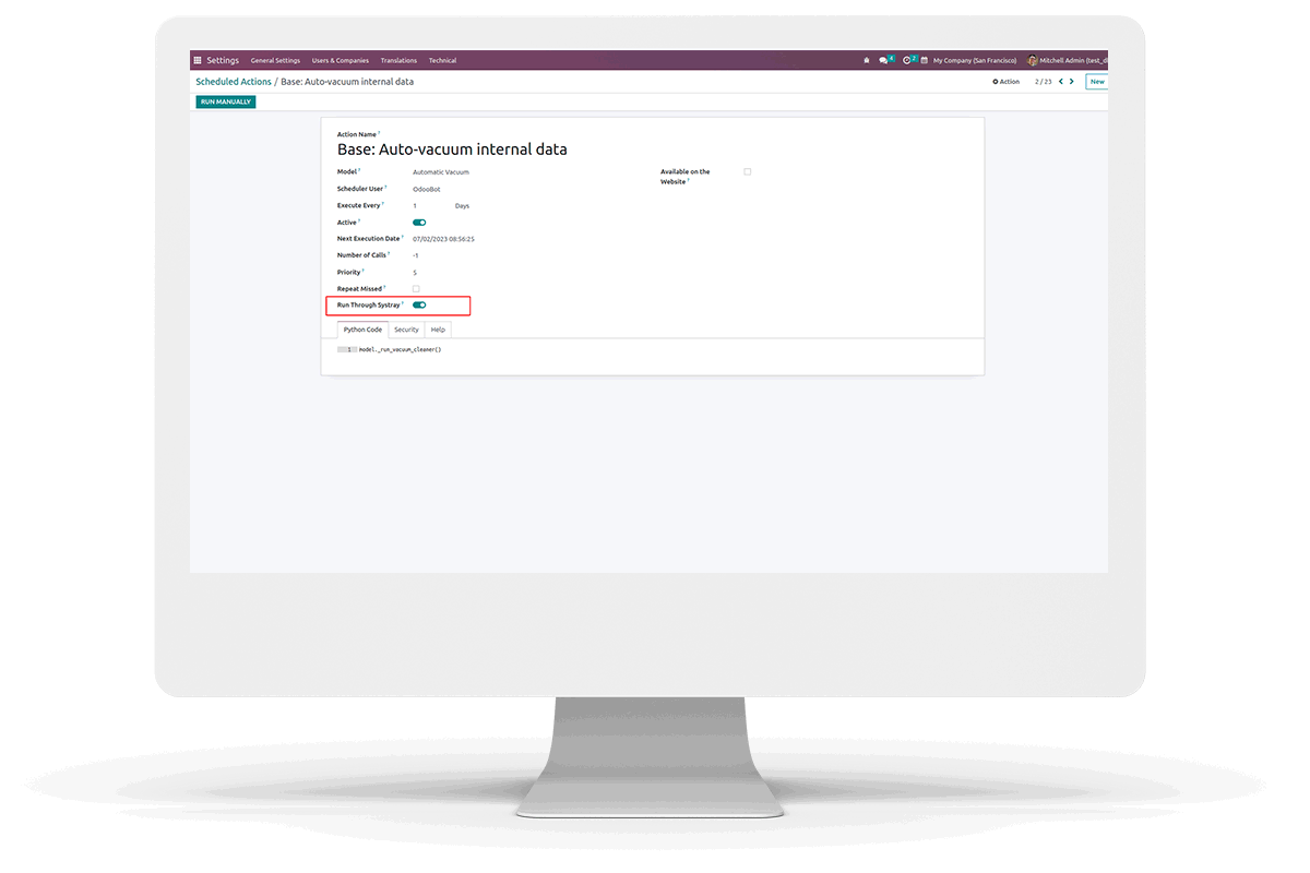 Enable the boolean field to run scheduled actions through systray, Only enabled scheduled action are shown on the systray