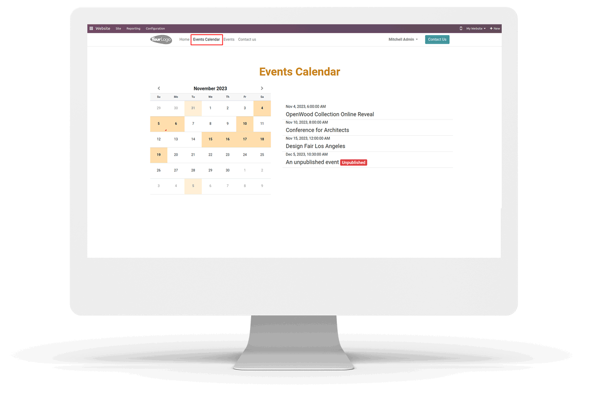 Give users the ability to simply track events on the calendar by date and to quickly access the event directly from the calendar.