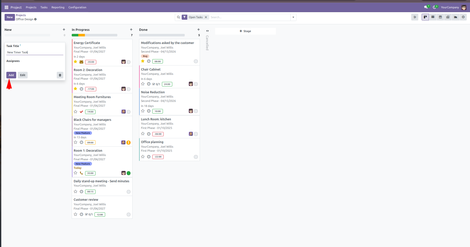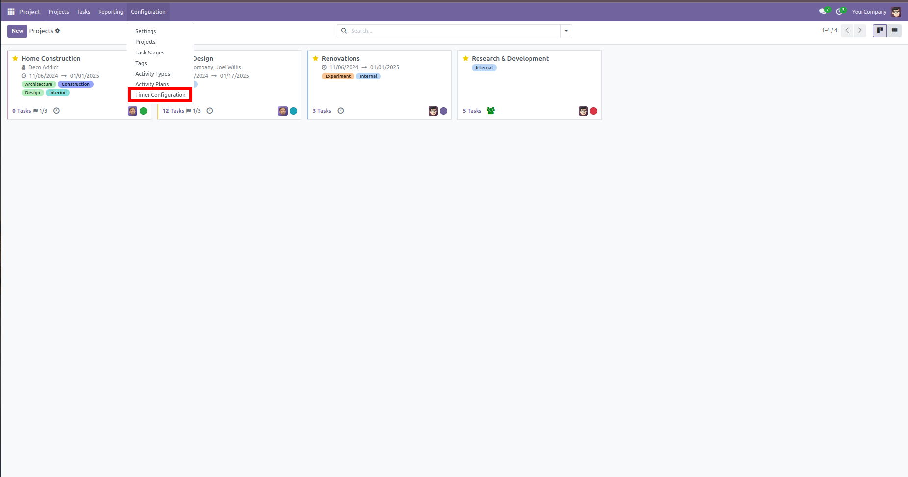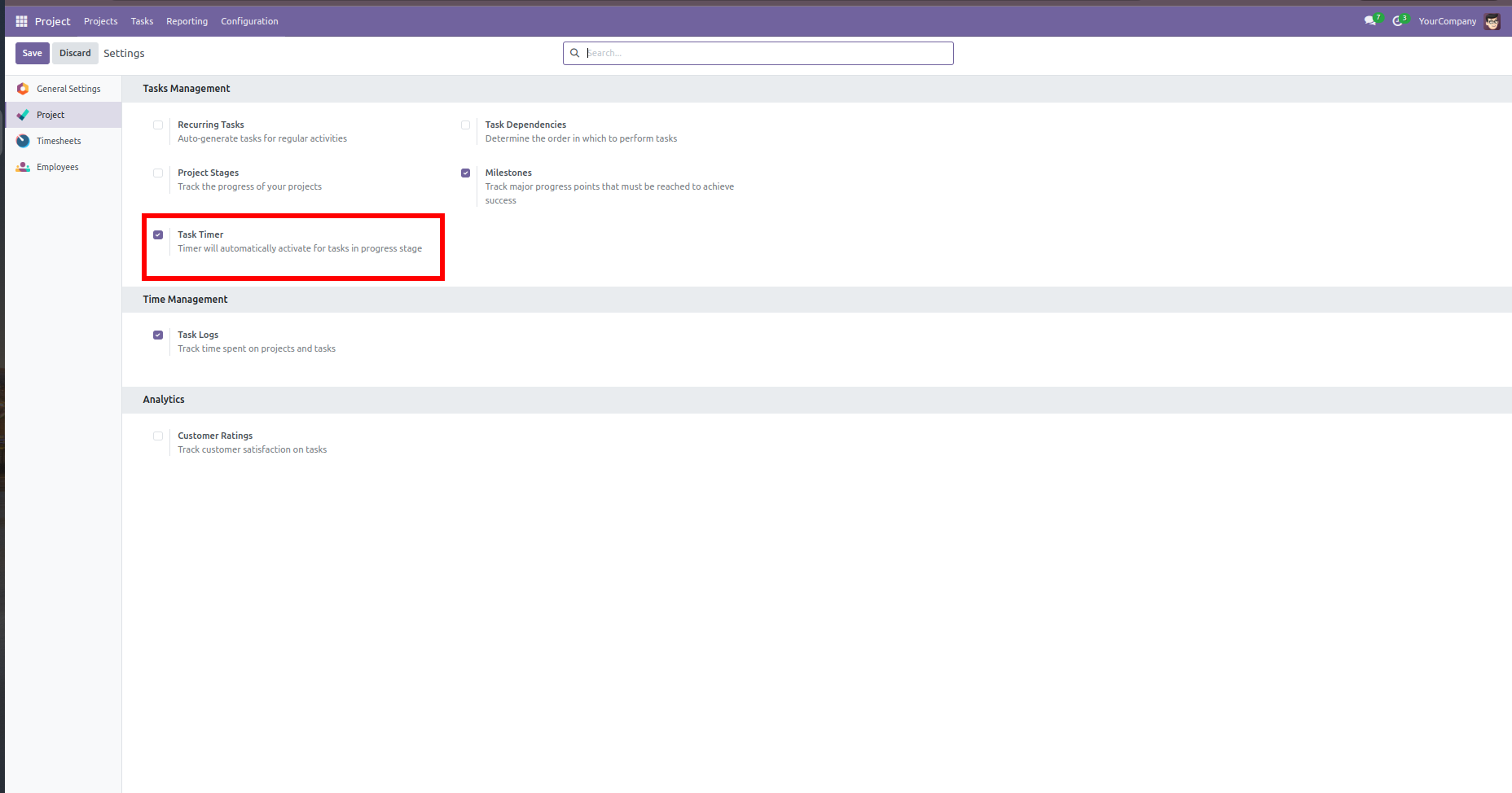 Automatic Running Timer for Project Tasks at the Configured Stages.