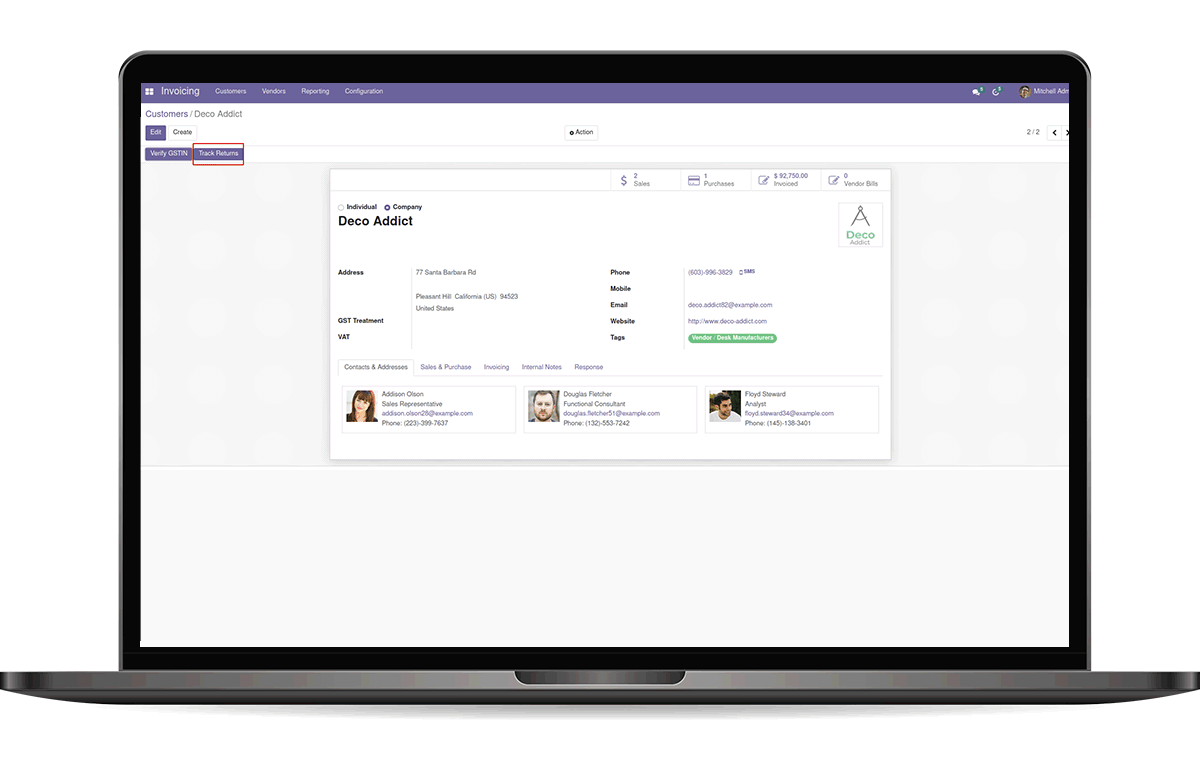 1. This module uses the GSTIN View and Tracking Returns provided by https://www.mastersindia.co/ for the financial year