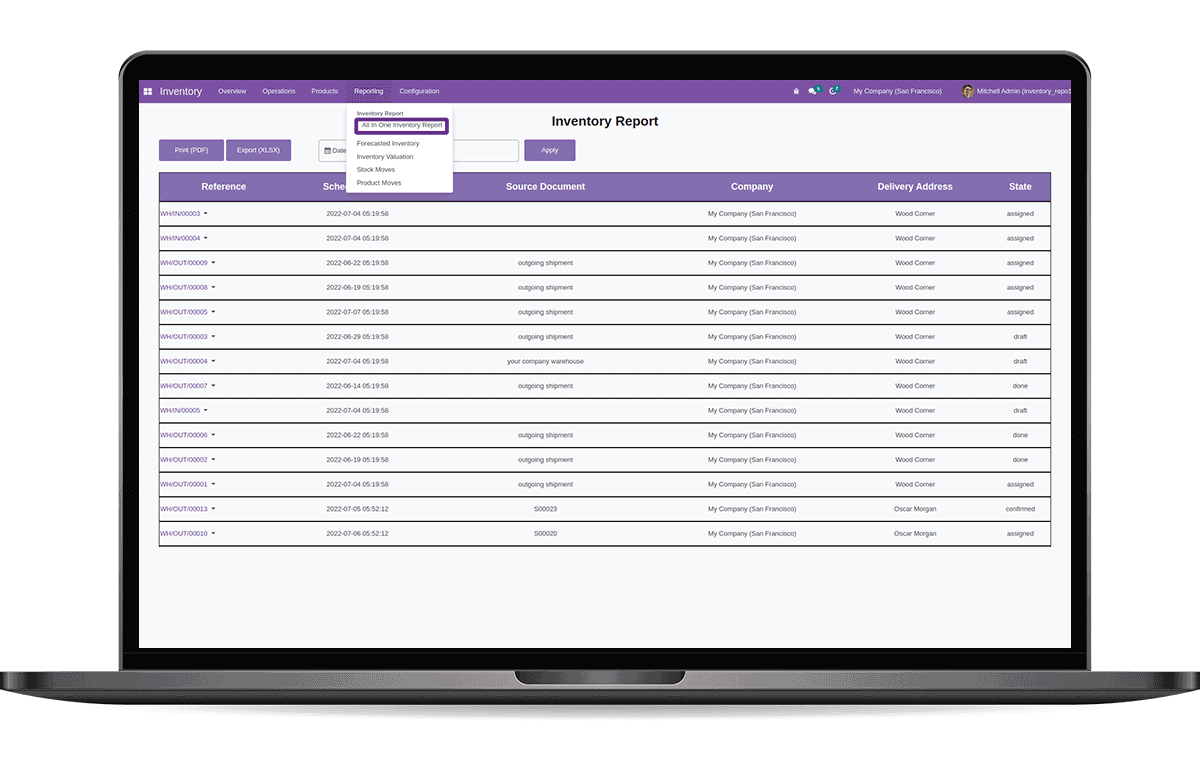 This app is useful to provide different Inventory Reports to do analysis. It shows the Inventory analysis of a company in many aspects such as by order,order details,salesman and so on. It can be filtered out based on different date ranges too.