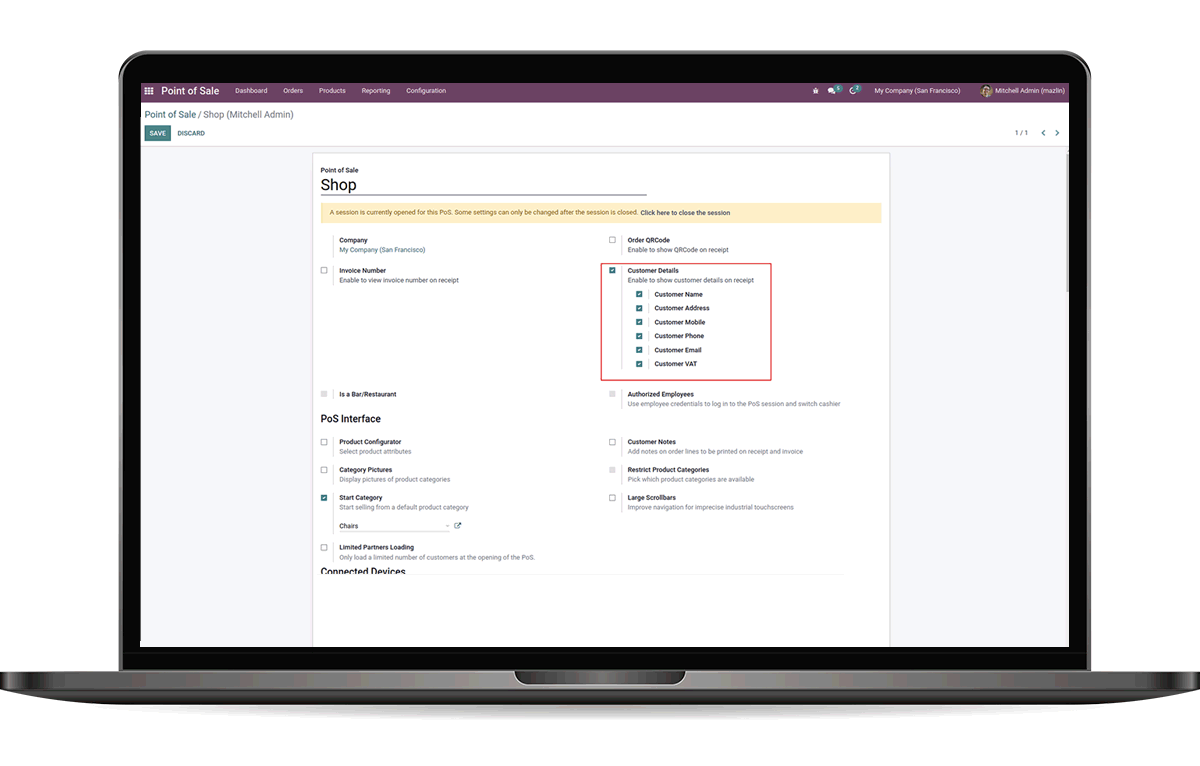 Go to Point of Sale -> settings -> We can enable the checkbox for Customer Details, and we can enable the required data to visible in the receipt