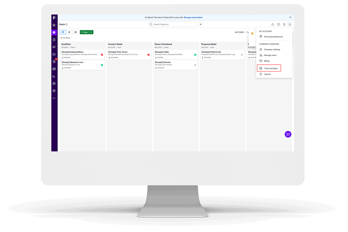 Imports all Products, Contacts and Leads from Pipedrive to