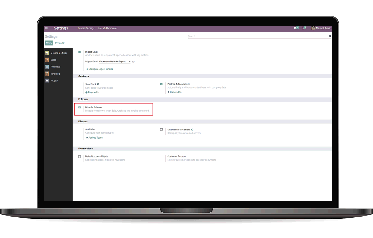 While confirming a Purchase Order, we can see that only the user is added to the follower. Here the vendor is restricted to be a follower.