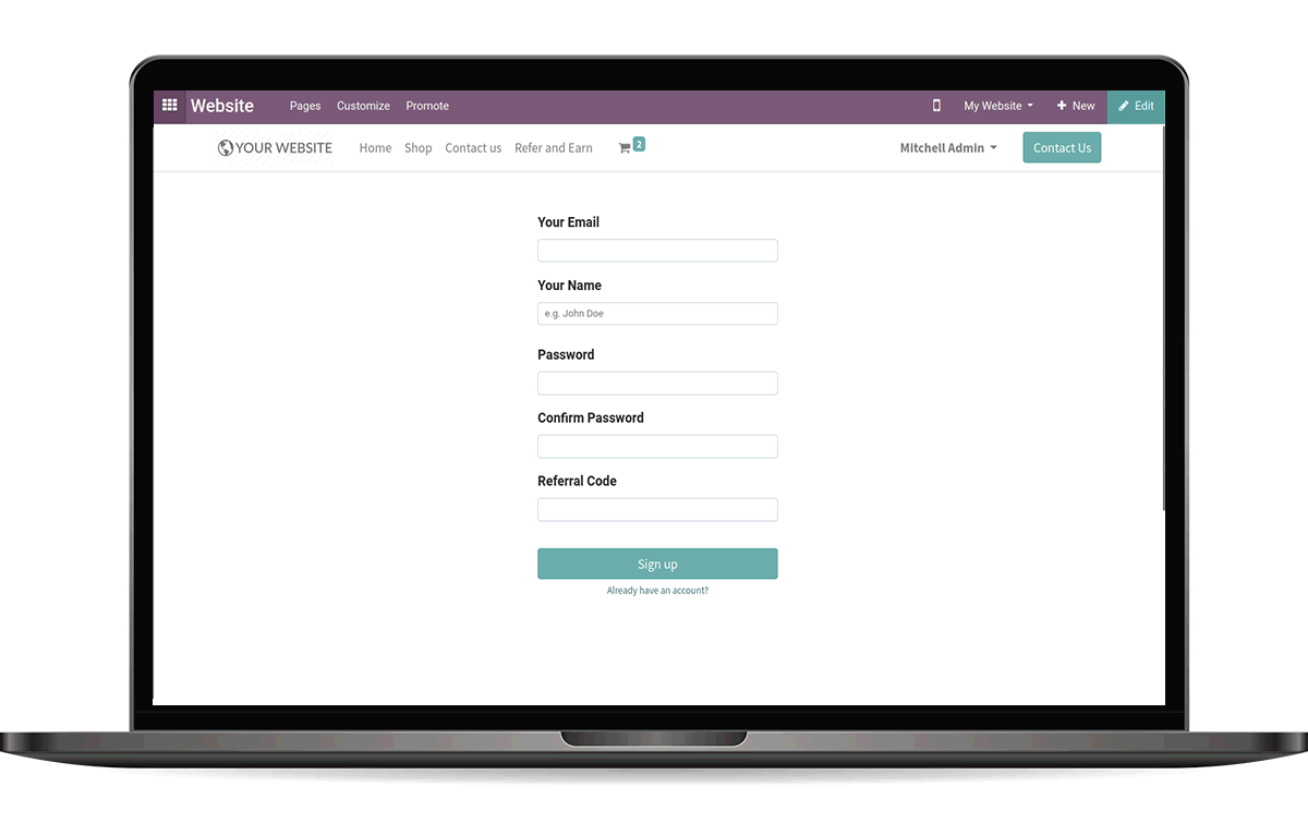From the website, you can click on Refer and Earn menu, and thus you are directed to the webpage, from there it is possible to share the referral code via email.