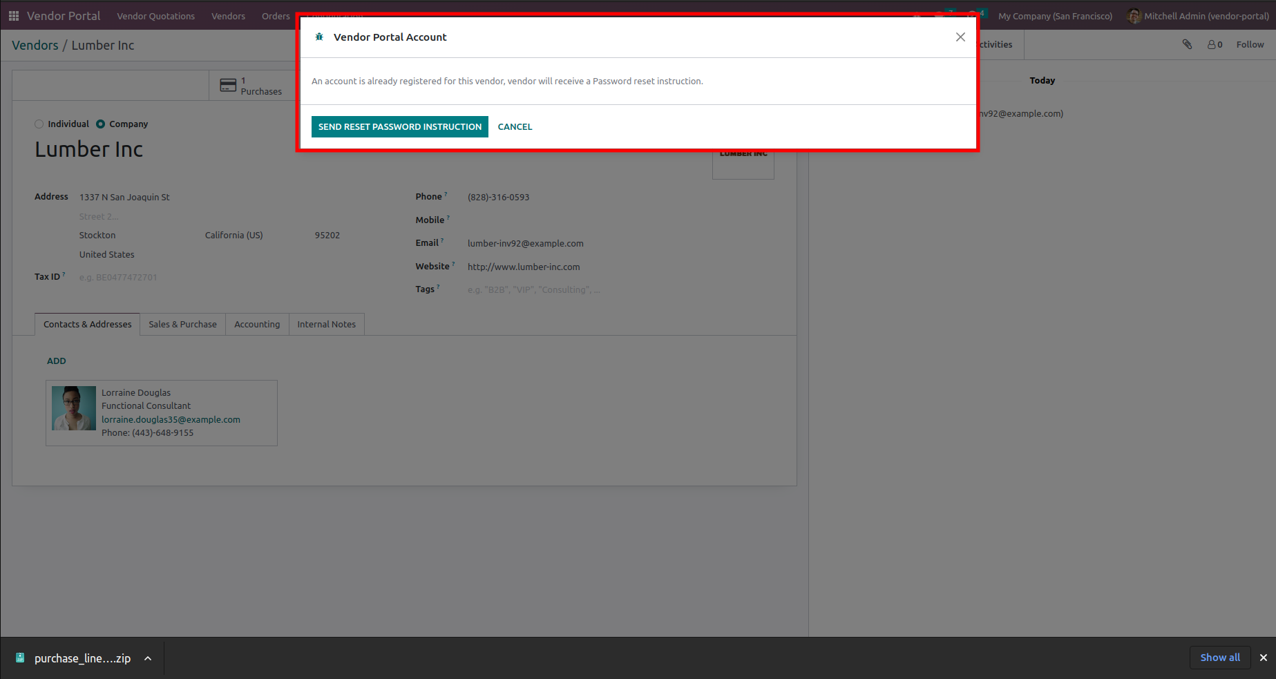 When clicking on the button will allow to send the vendor portal invitation link to invite the desired vendors to the portal.