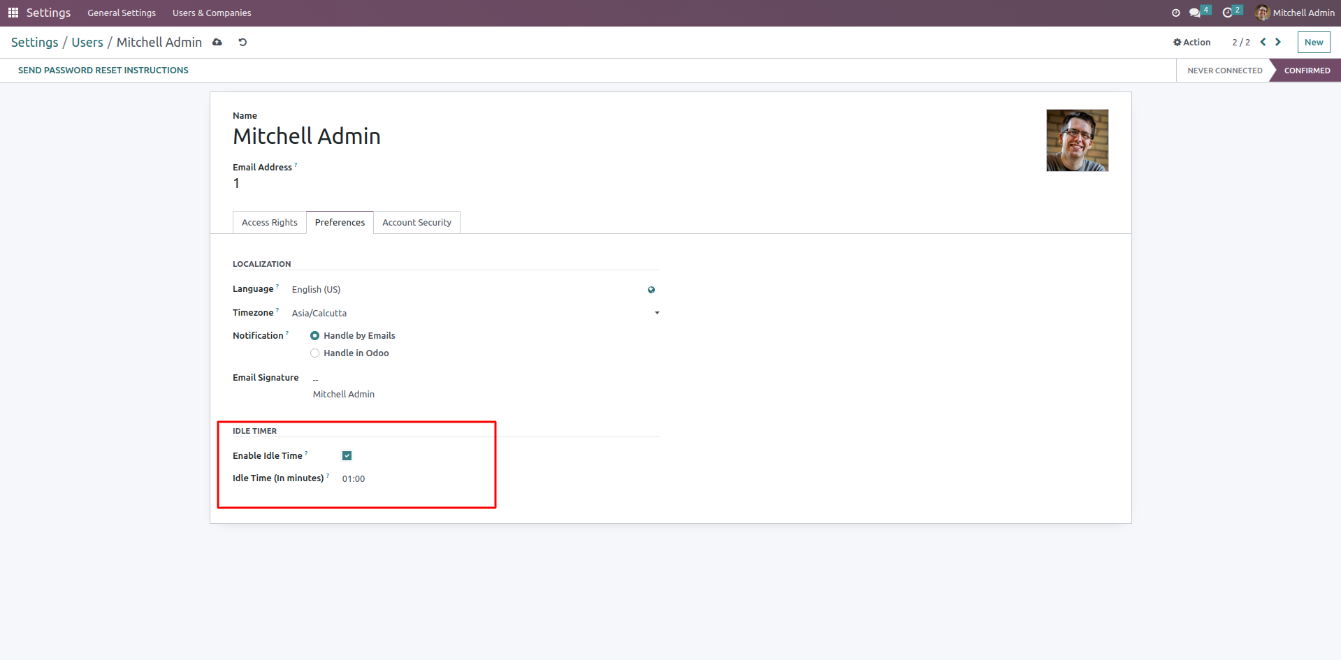 User need to enable the option idle timer under Settings -> Users -> Preferences after that set time for idle.
