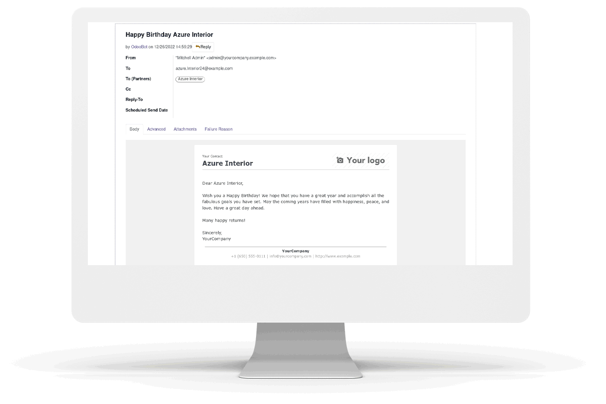 The contacts Birthday Wishes application helps you to send a happy birthday email to contacts. By setting the date of birth of the contacts. It will automatically send a greeting email on their birthday.