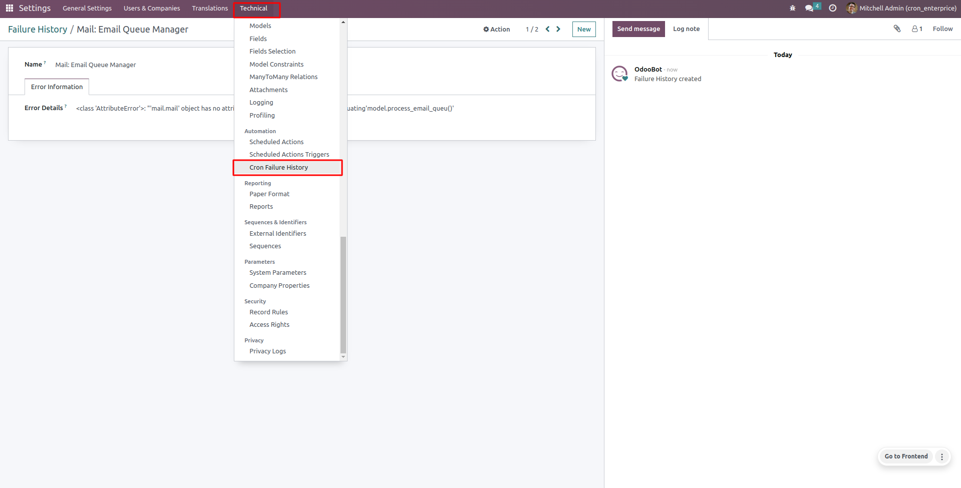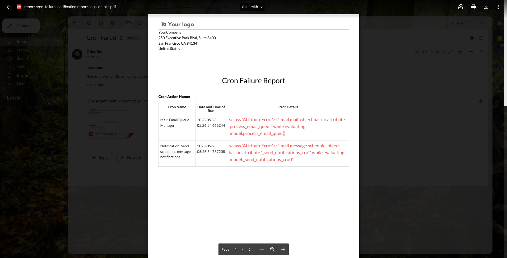 The Mail Contains Details of Cron Failure History with a Pdf Report.