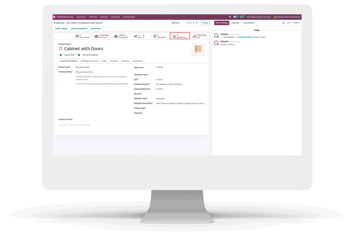 After Saving the BOM Form, Number of BOM will be displayed in Product form.