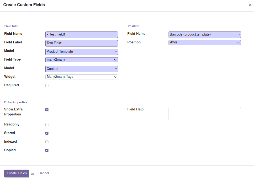 The Dynamic Product Fields helps with easy creation of custom fields on products without any coding. This module helps to add new fields on the product's form as per one's requirement. From the products view, one can click create fields and can create a new custom field without any coding.