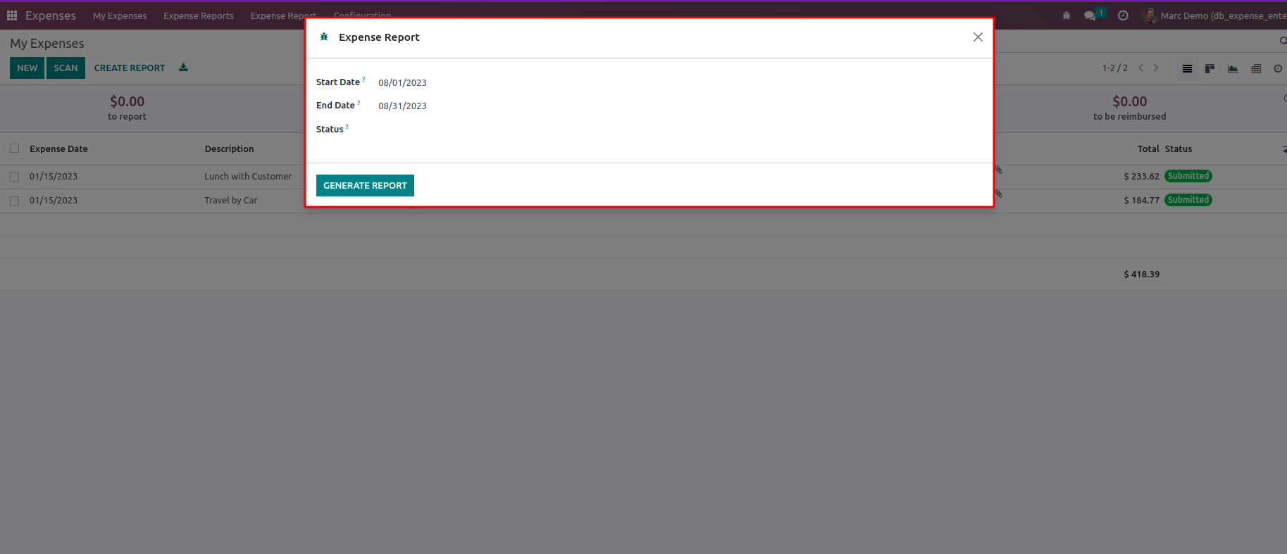 Generate Employee Expense Reports As Per The Specified Requirements.