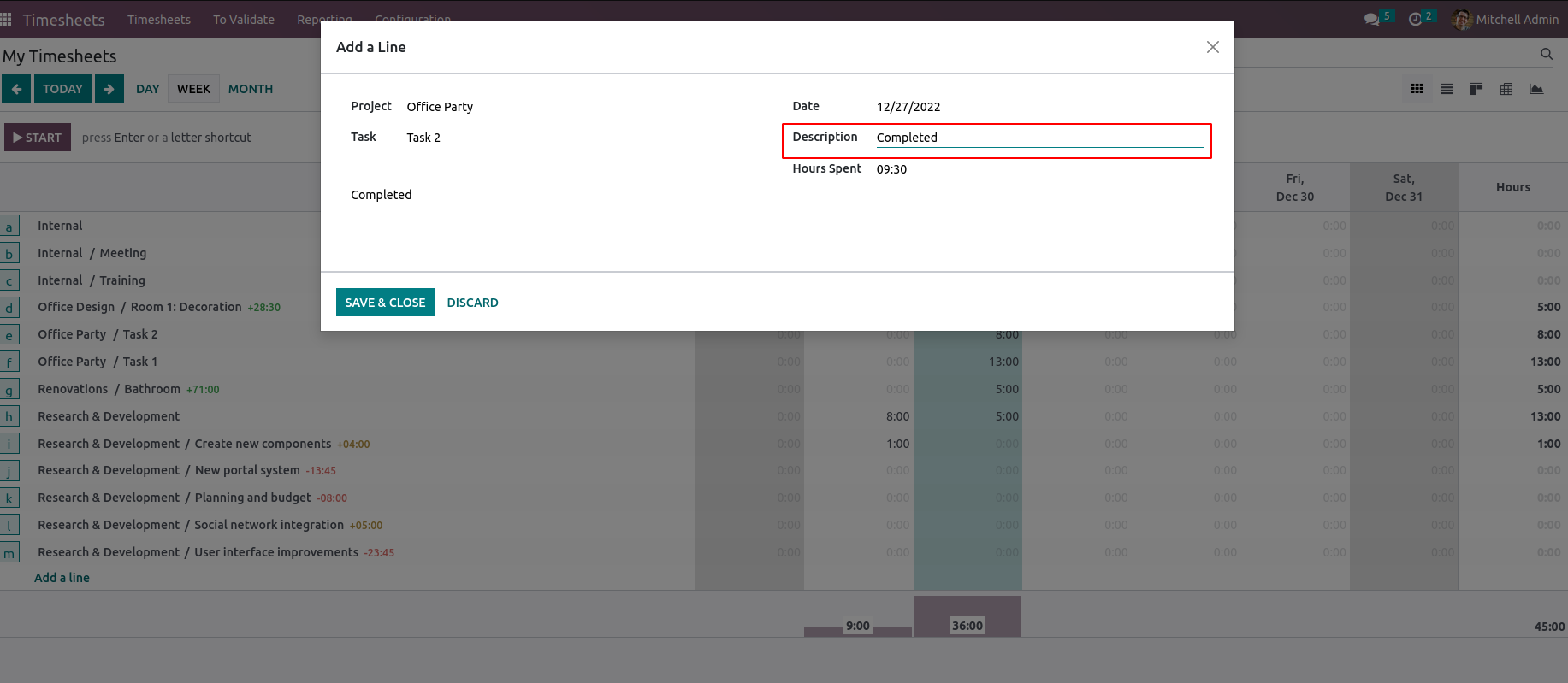 In Timesheets module we can add timesheet for the tasks like below. In here we can see a new field for adding description of the current task.