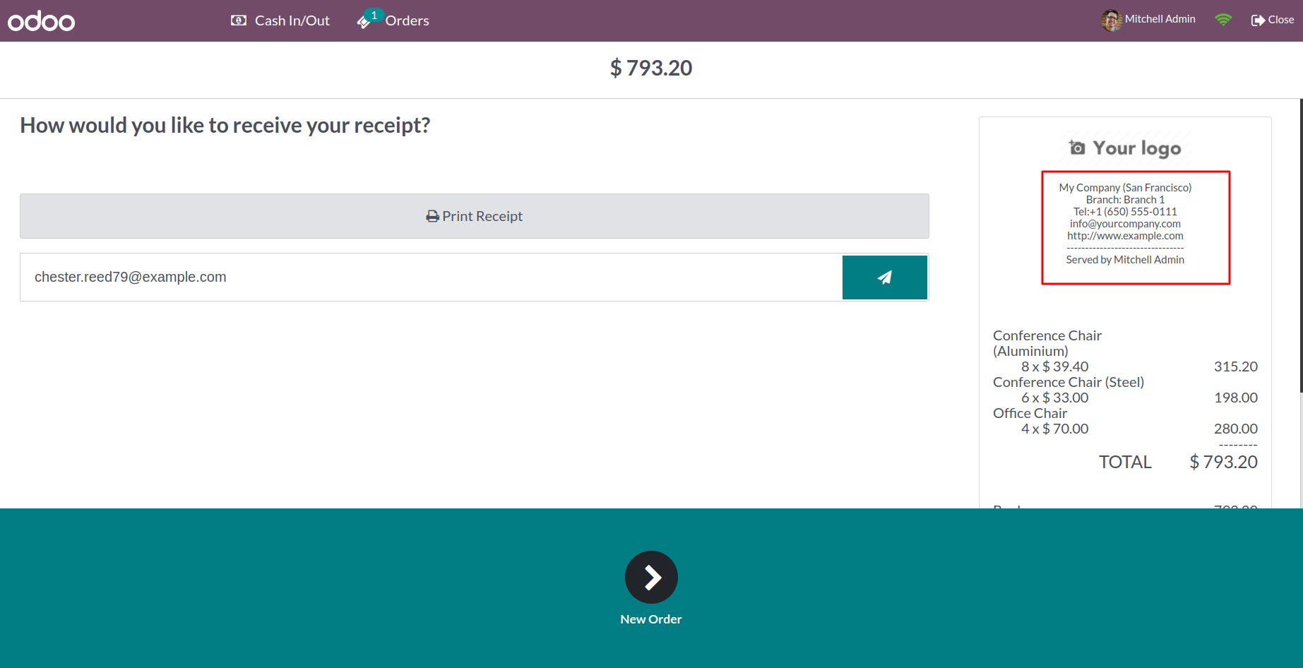 Branch details on Order receipt.