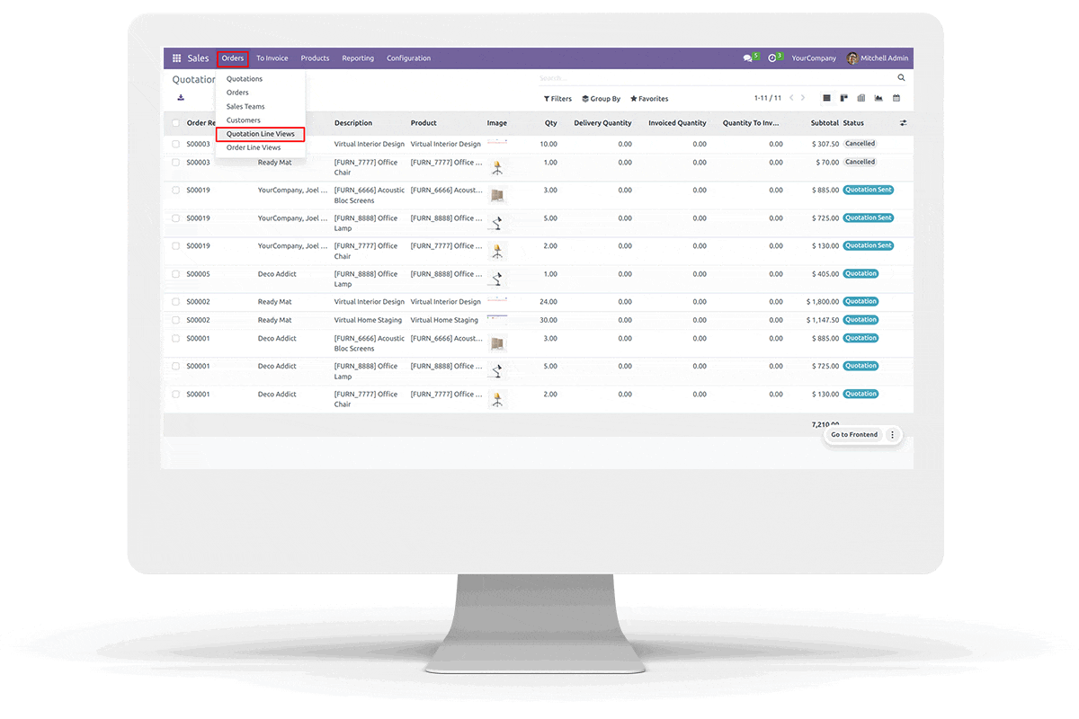 Go to "Quotation Line Views" under "Orders" Menu in Sales.