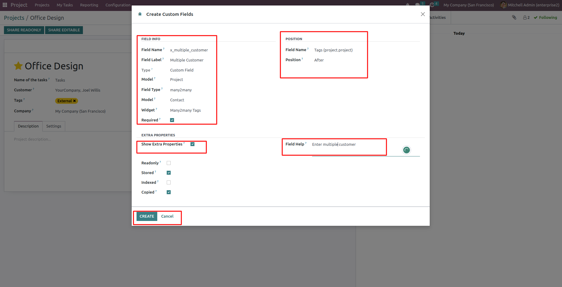 Fill in the details (also can select 'Widgets' if needed) and click create fields , a new field will create.