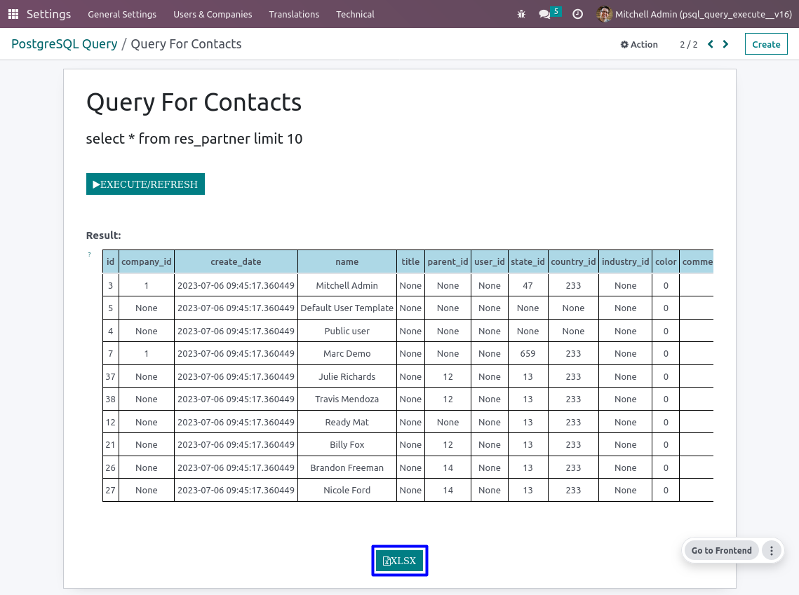 This module helps you execute a query directly in the Odoo interface and output your query in Excel.