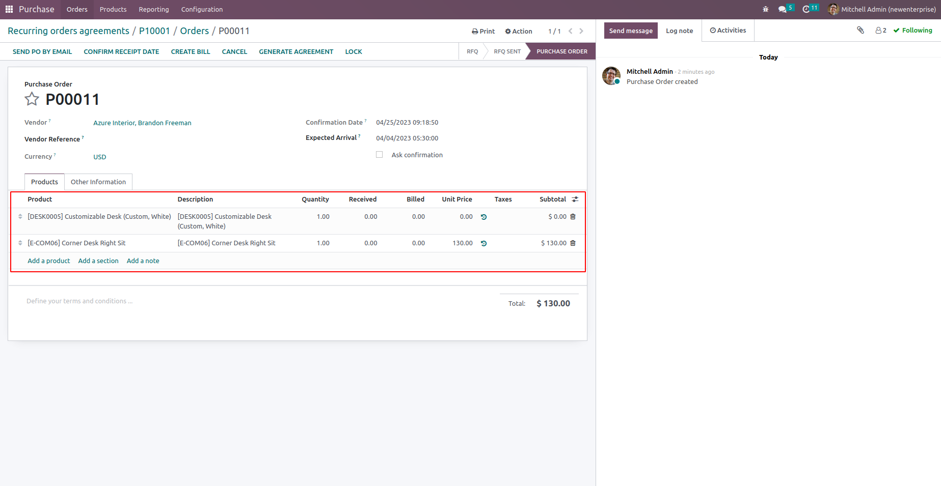 First Purchase Order Generated according to the details added in the Recurring purchase agreement.