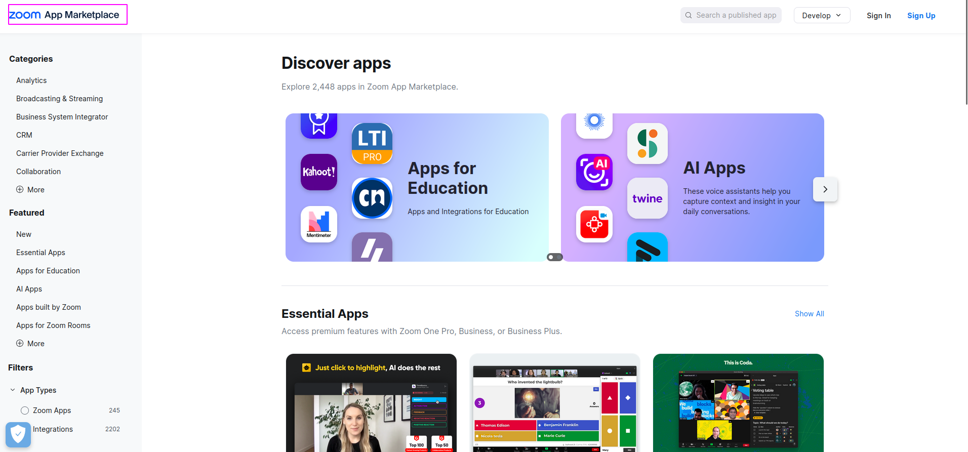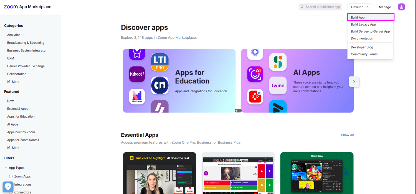 Go to the link https://marketplace.zoom.us/