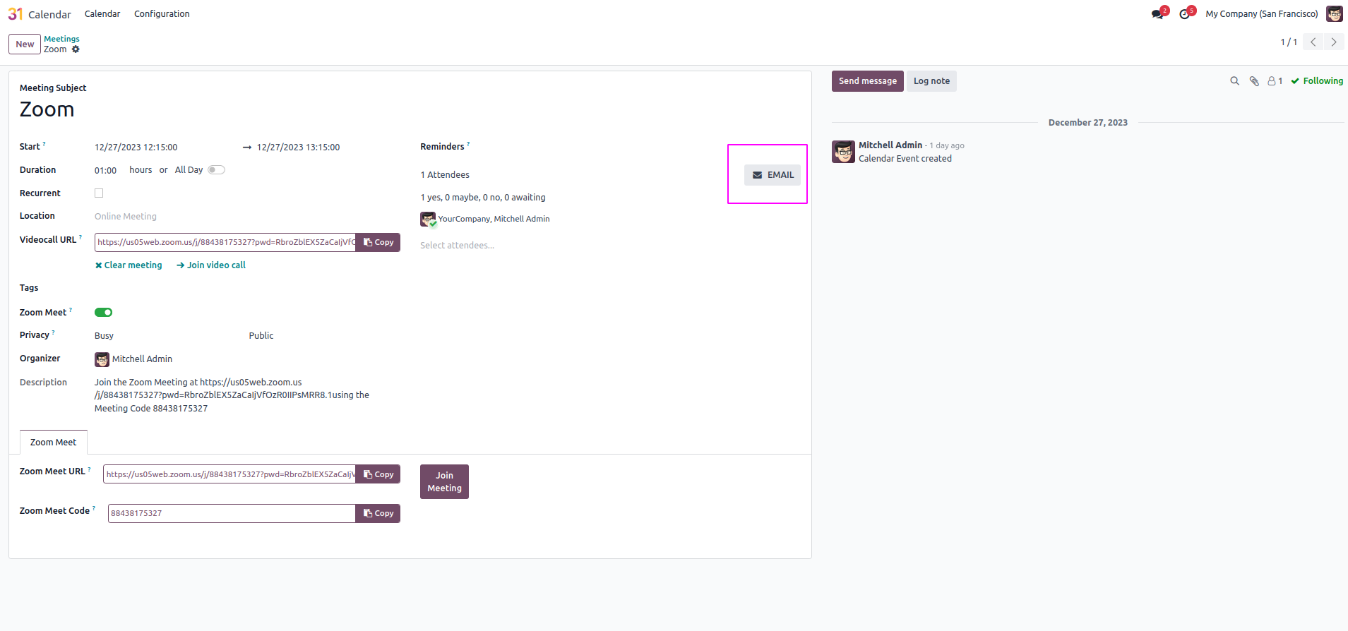 Create Zoom Meetings from Odoo Calendar.
