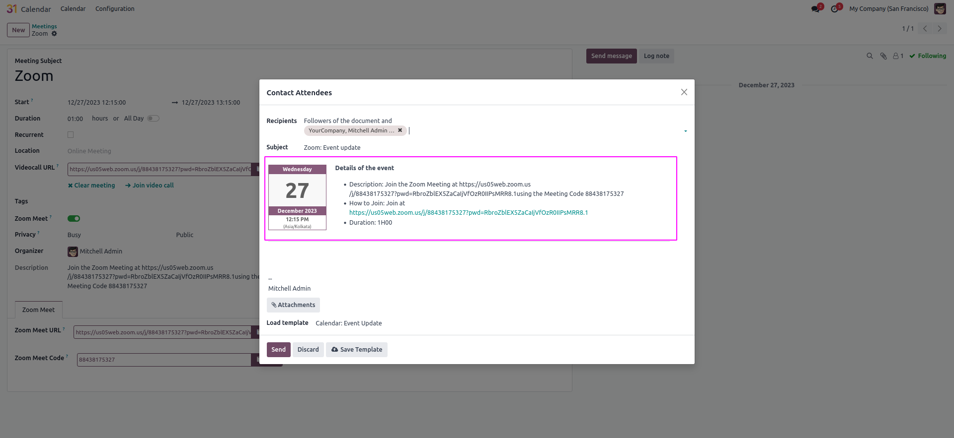 Send A Zoom Meeting Invitation Email To Event Attendees.
