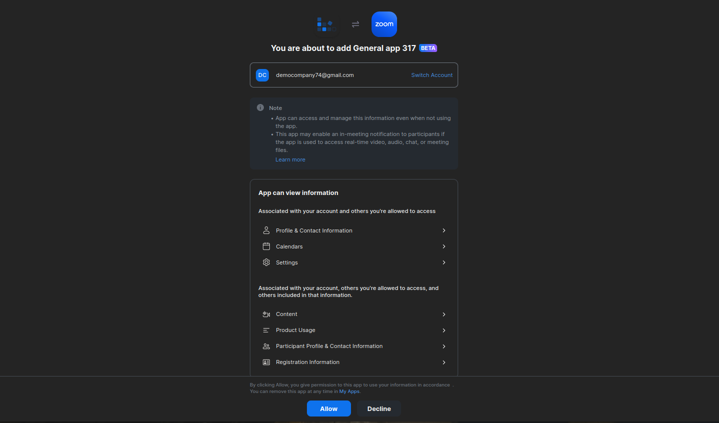 After Click The Authenticate Button You Will Redirect To Log In The Zoom.Then You Can Get The Result Of Authentication.