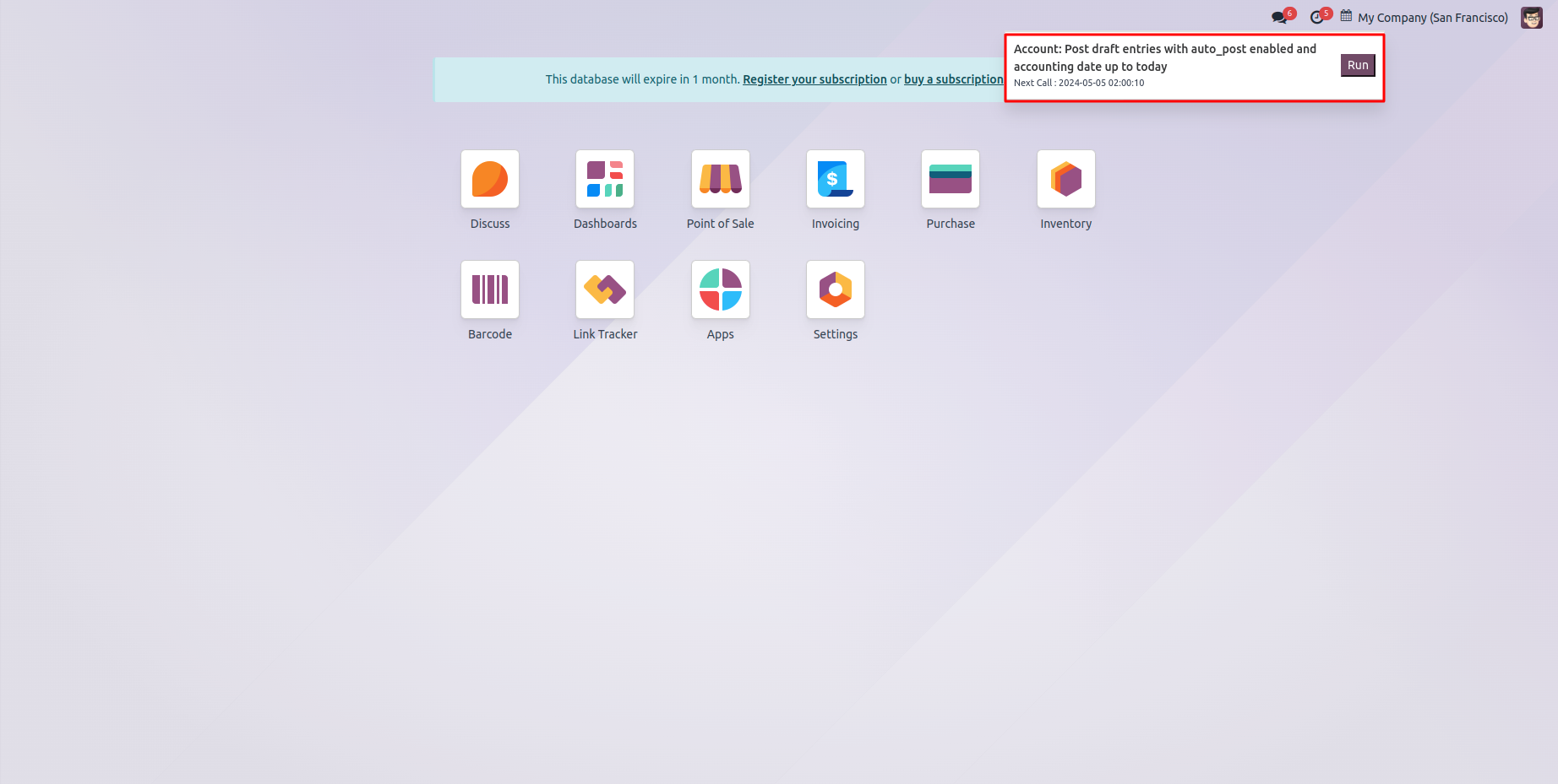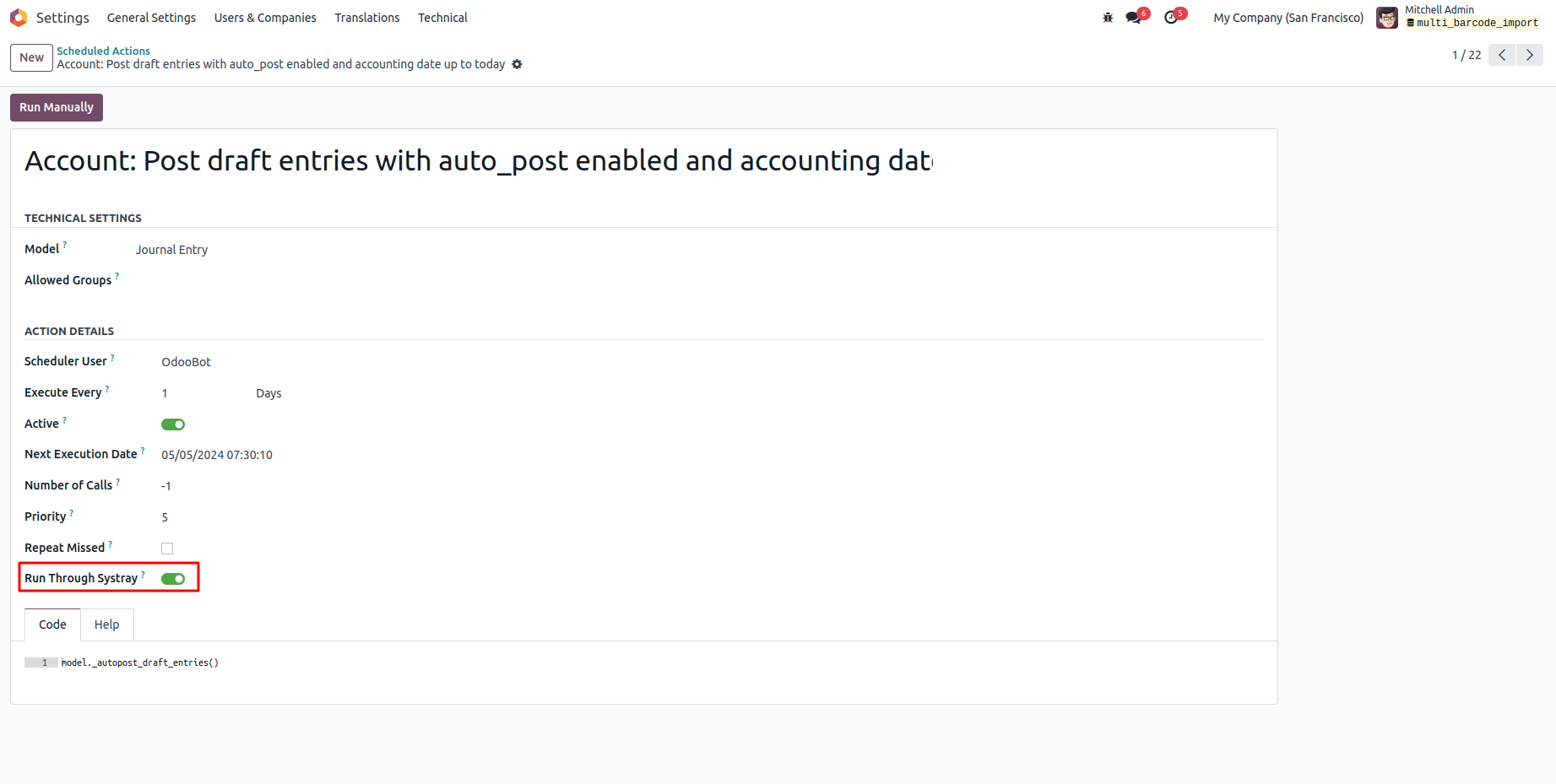 Enable the boolean field to run scheduled actions through systray, Only enabled scheduled action are shown on the systray.