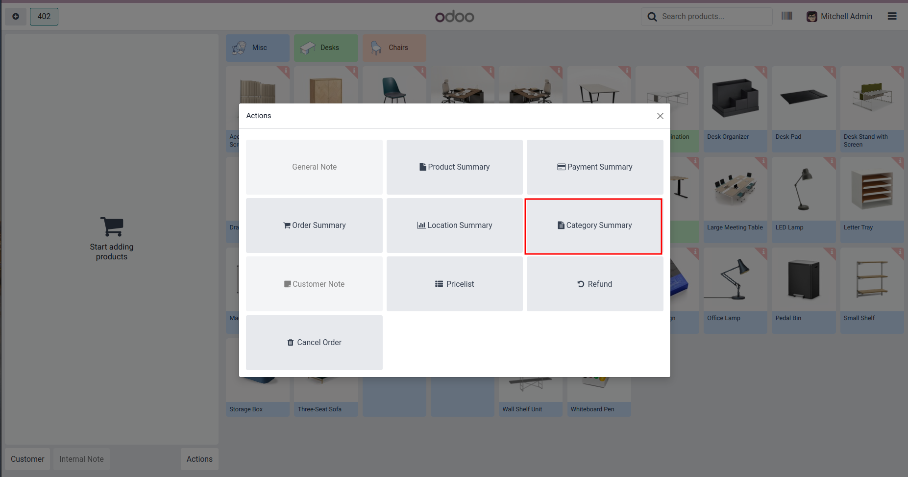 Click Product Summary from POS Screen.