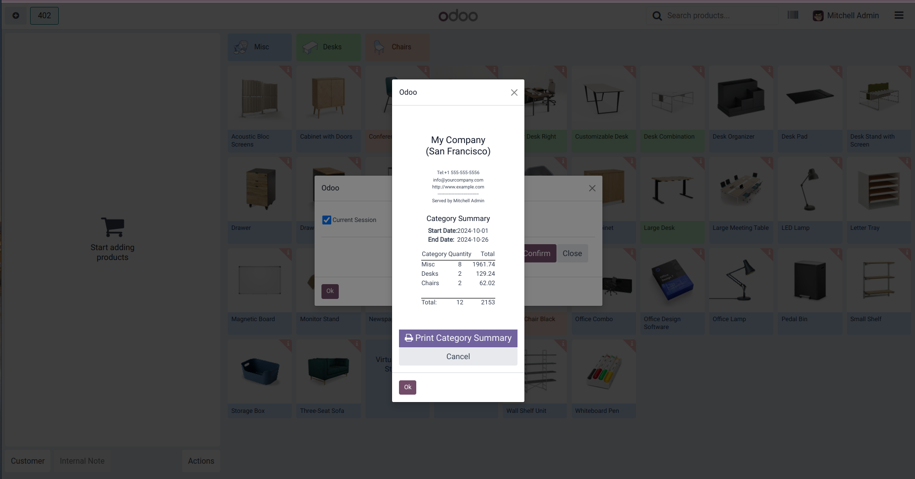 Category Summary from POS Screen to get category wise sale details current session/ All sessions within a period