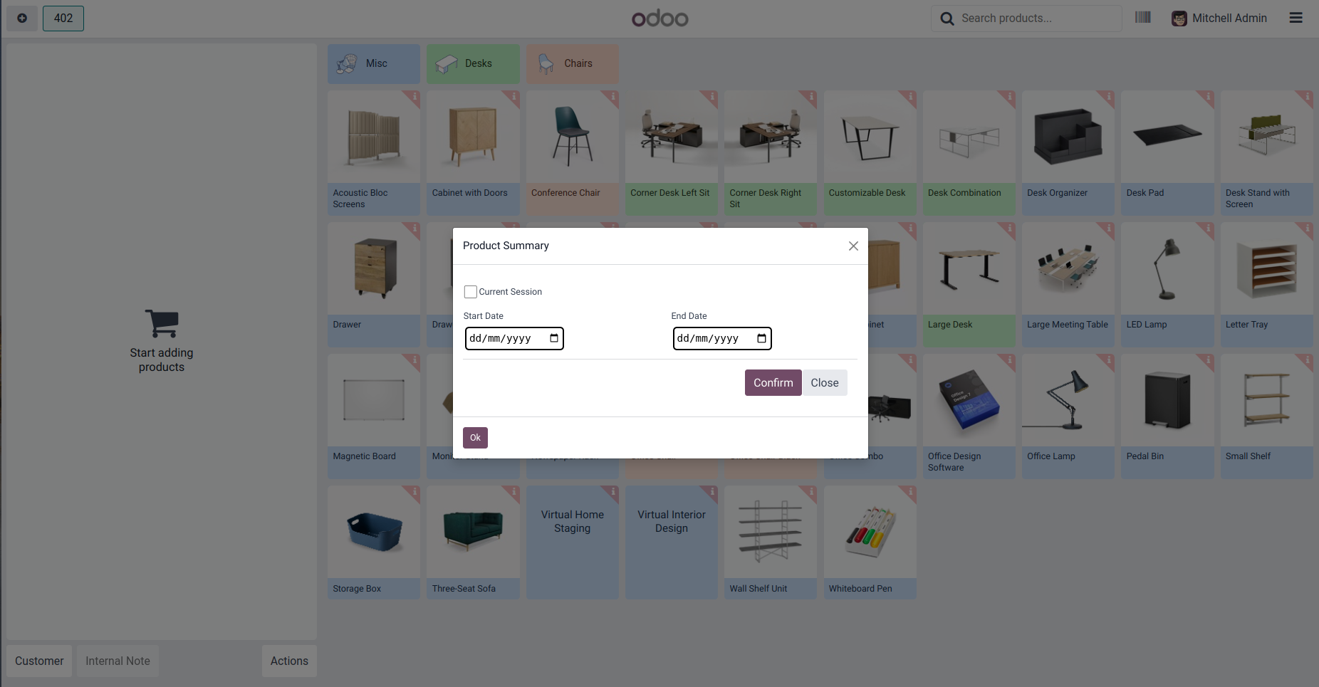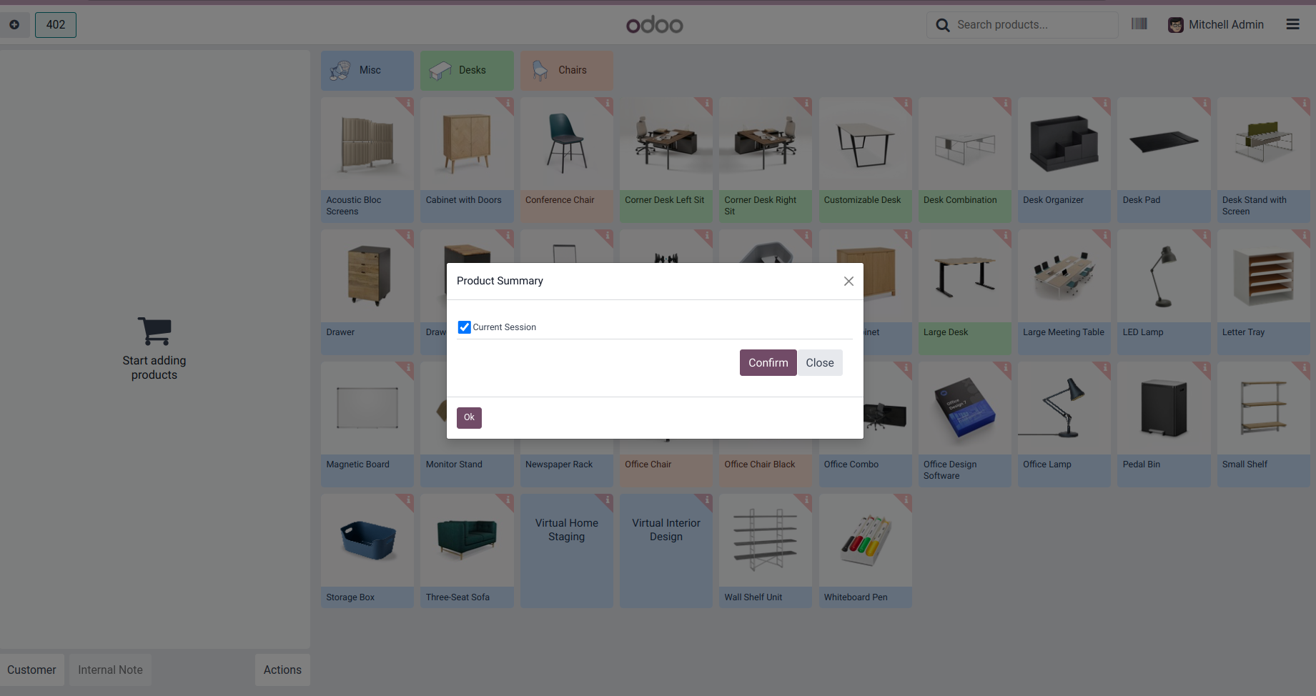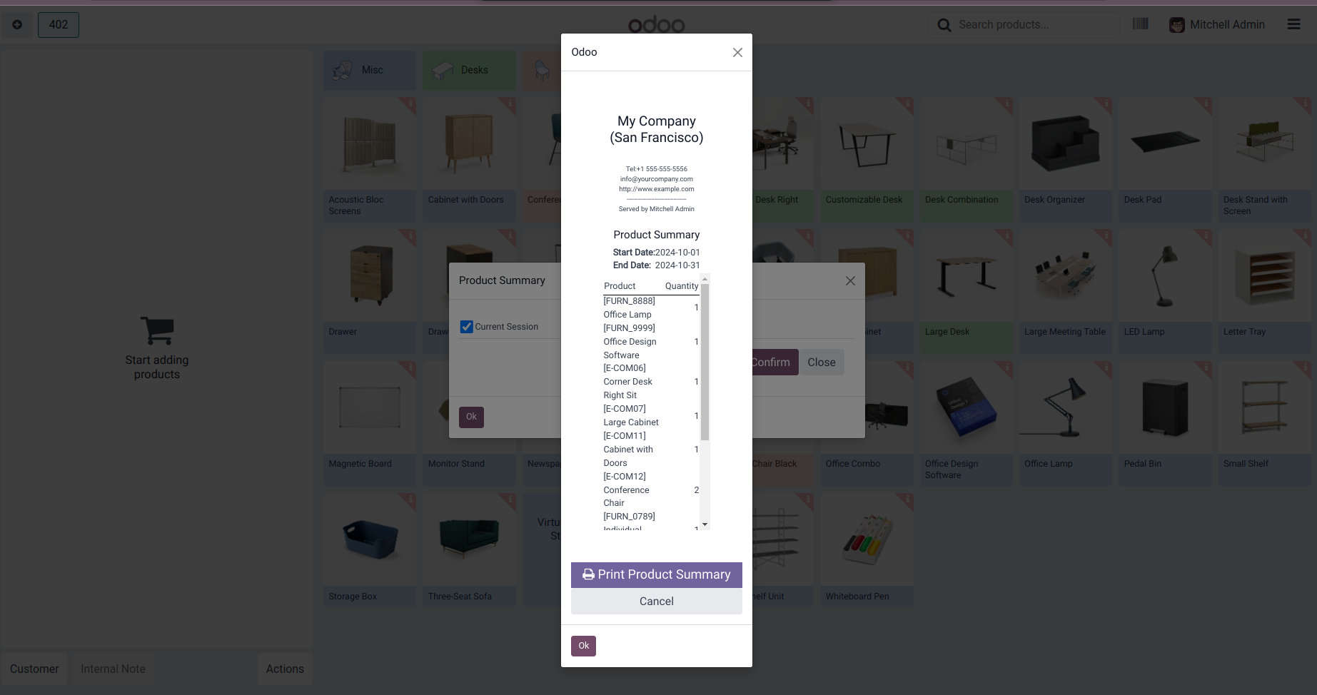 Product Summary of Current Session.