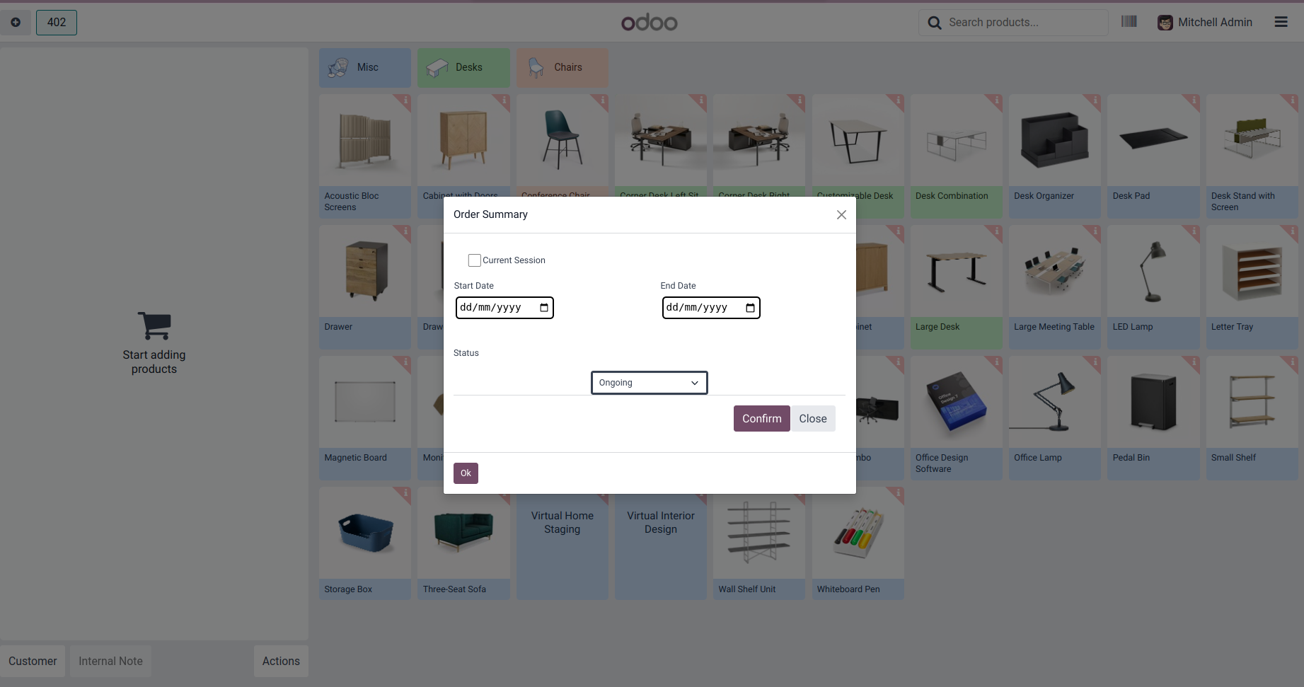 Order Summary from POS Screen to get all order details of current session/ All sessions within a period