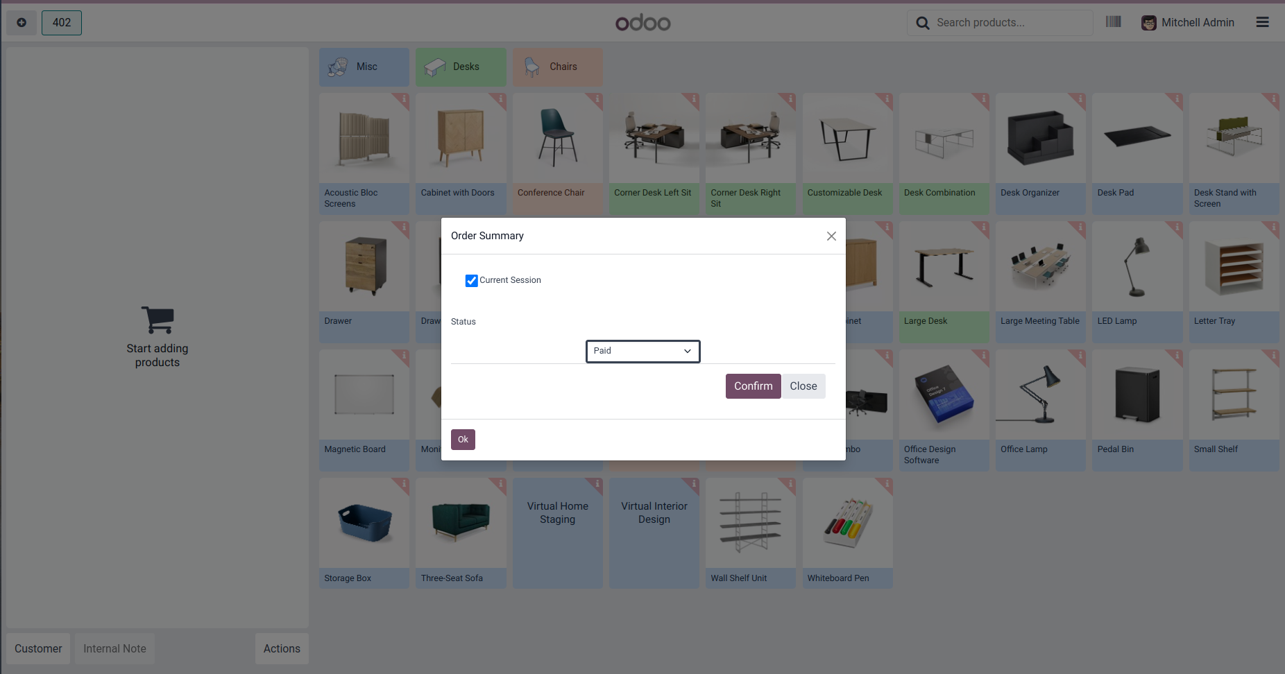 Payment Summary of current session.