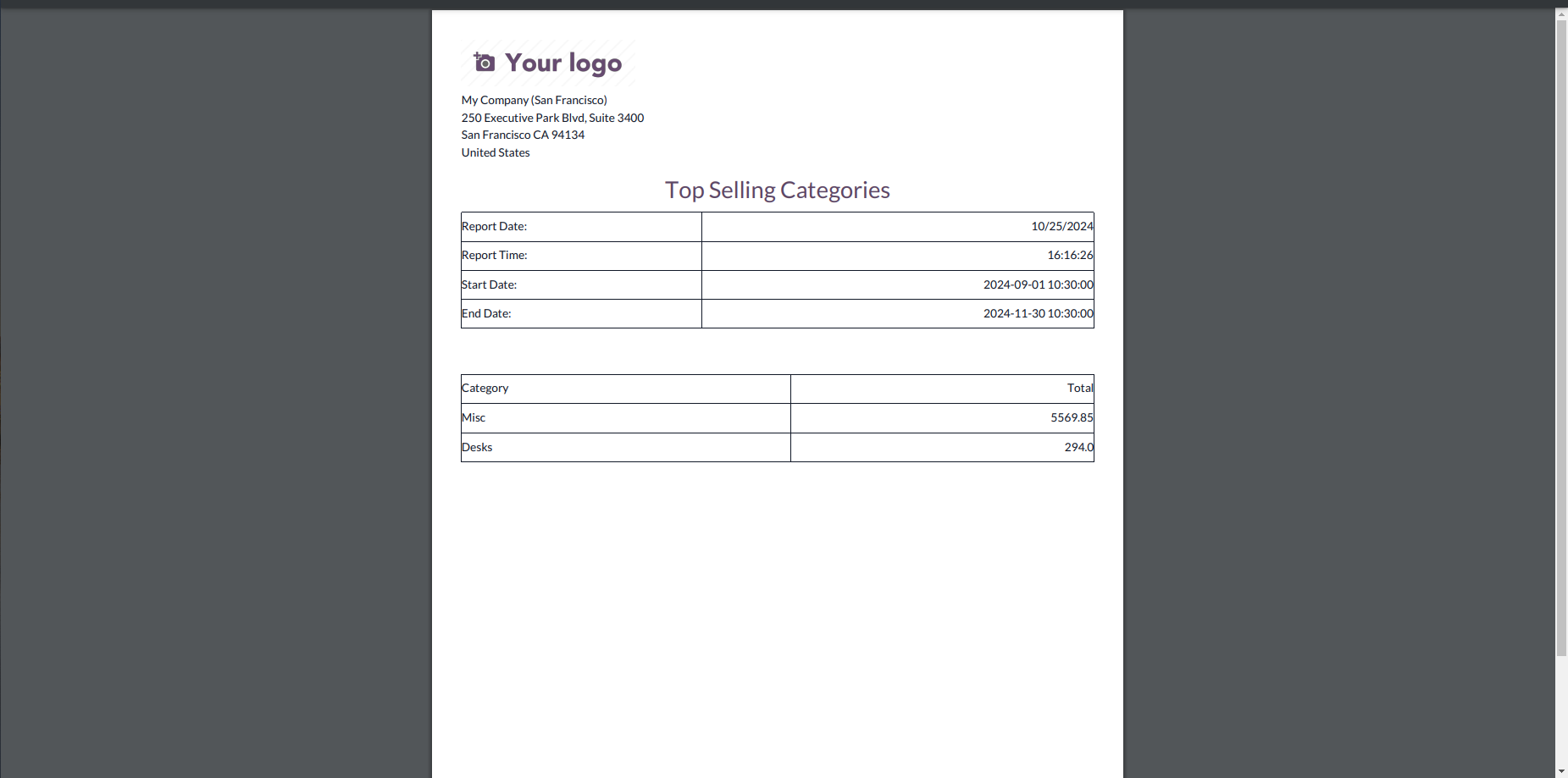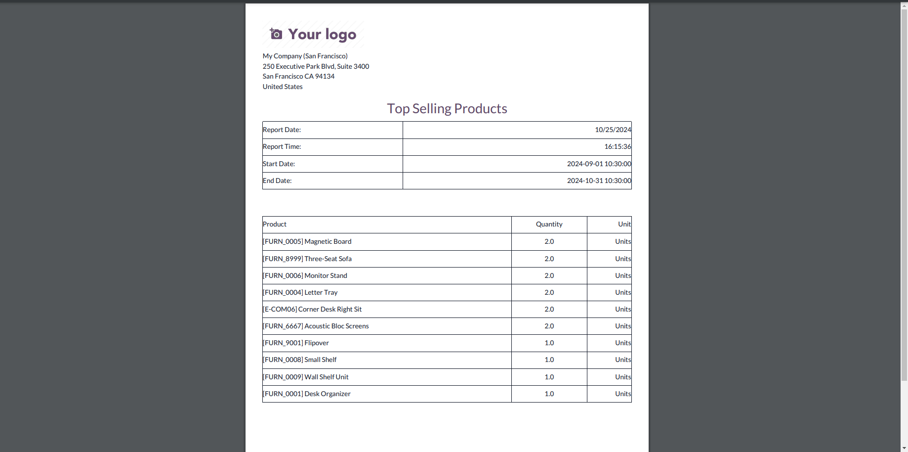 Top Selling Products Report.