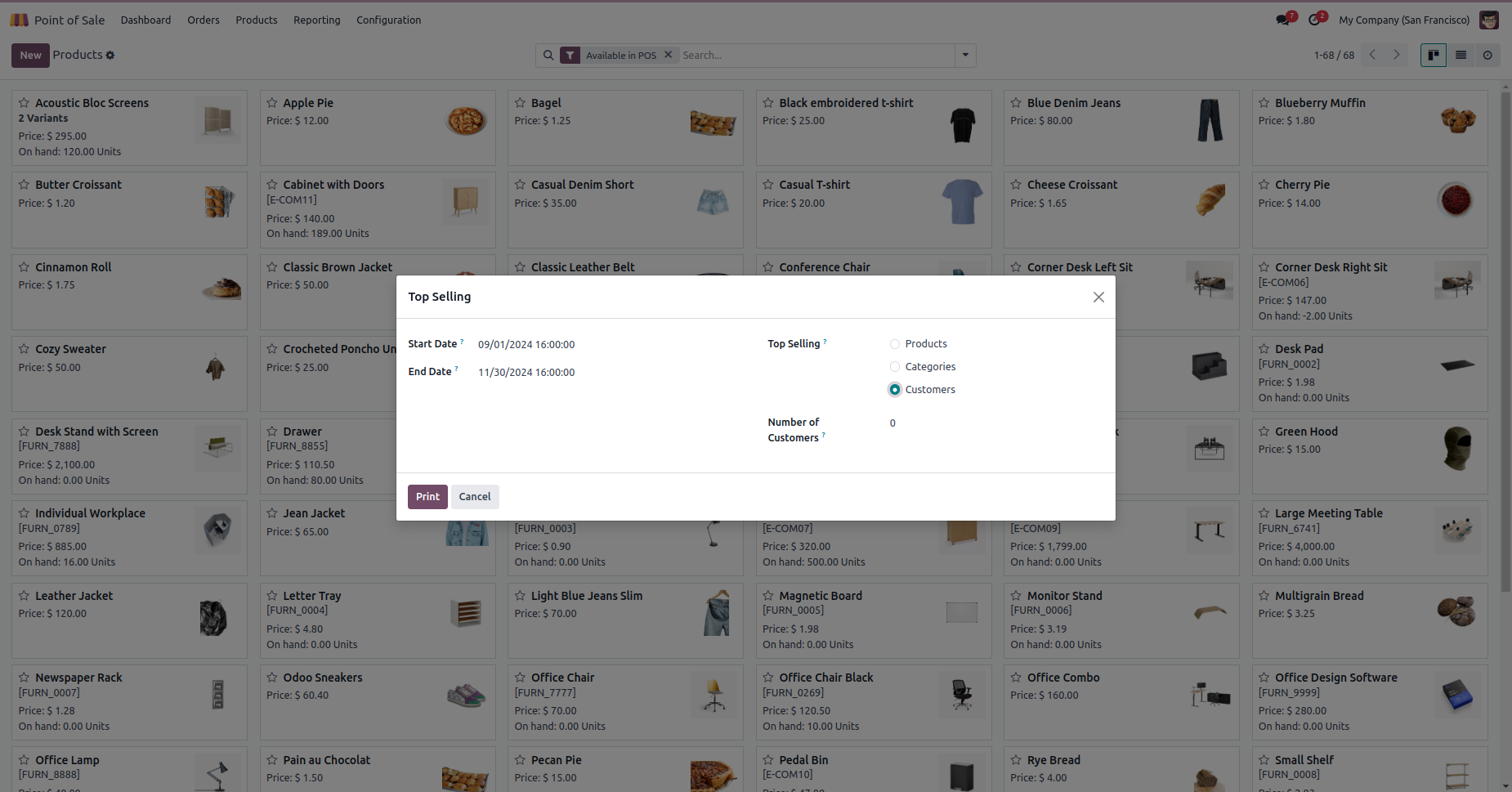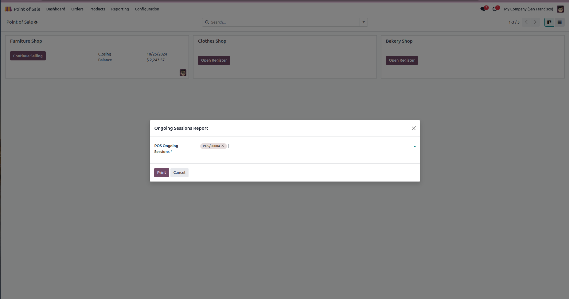 From Point of Sale --> Reporting, user can access the custom Reports like Top Selling and Ongoing Sessions.