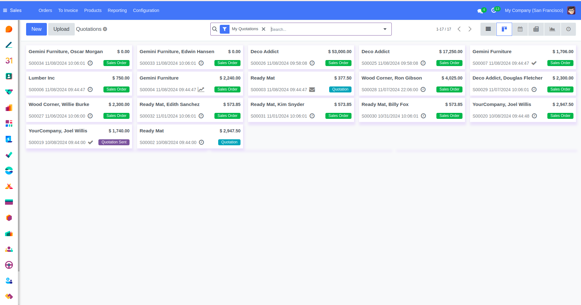 The Kanban View in the "Dodger Blue" theme for Odoo 18 offers a clean, organized layout with color-coded cards for easy task tracking. A blue and white color scheme, modified fonts, and enhanced buttons improve readability and usability. This responsive design allows users to manage workflows efficiently, with easy drag-and-drop functionality across stages.