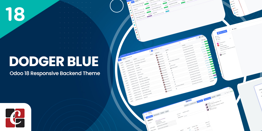 The List View in the "Dodger Blue" theme for Odoo 18 features a clean, structured layout with a blue and white color scheme that enhances readability. Each row displays essential information clearly, with color-coded indicators for easy status recognition. The layout is fully responsive, designed to improve navigation and data management, allowing users to view, filter, and sort records efficiently. .