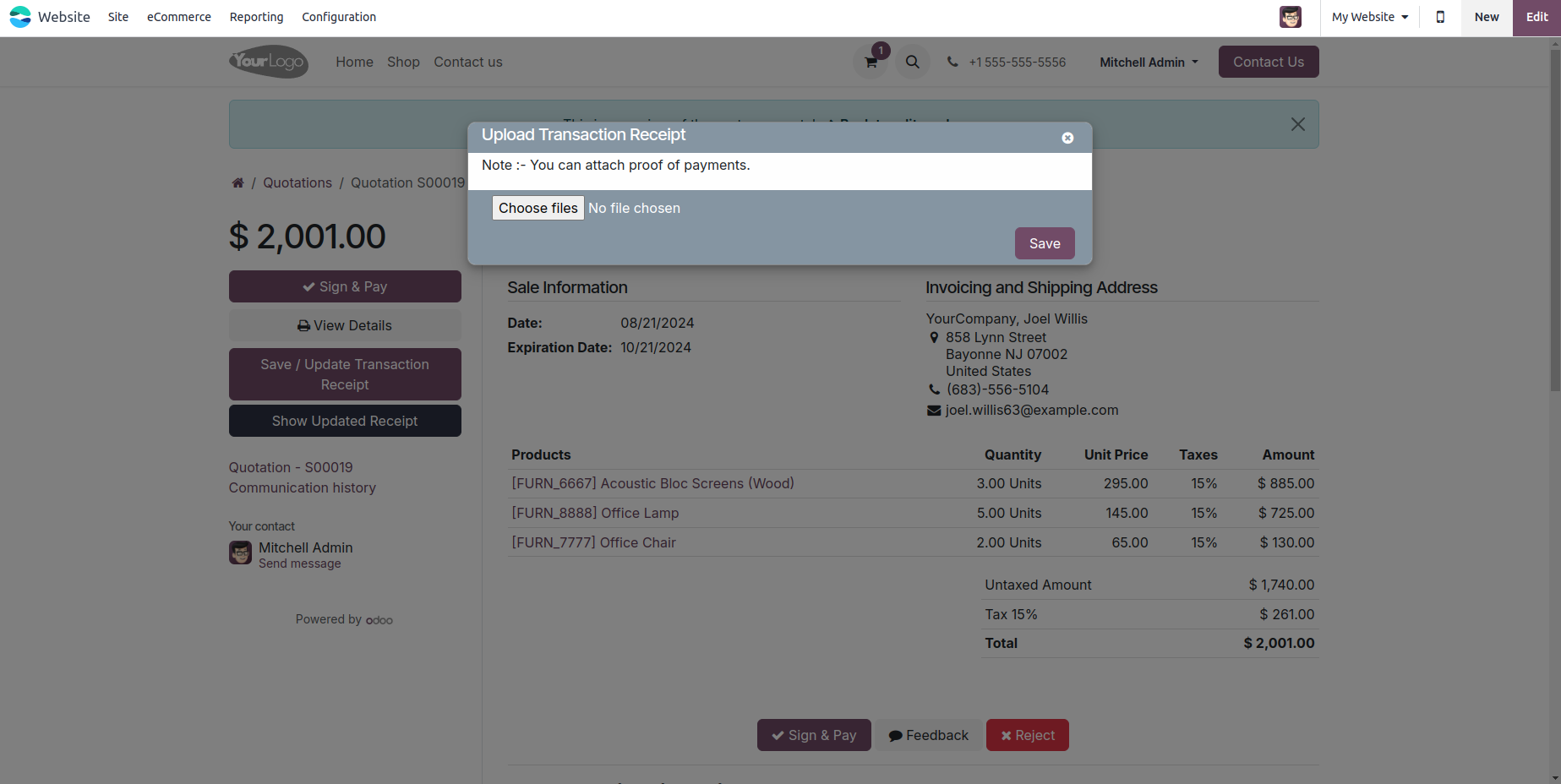 This module enables customers to upload and attach proof documents or files directly from the website when placing orders or submitting requests. It streamlines the process of providing necessary documentation for verification.